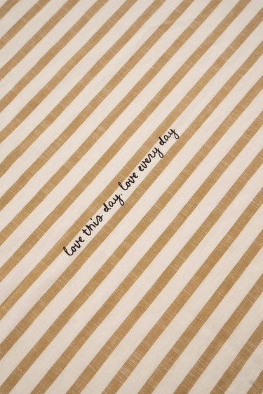 Deze tafelloper van Zusss maakt een feestje van jouw tafel! De tafelloper is honing/wit gestreept. In het midden staat subtiel de tekst 'love this day'.... Lees meer