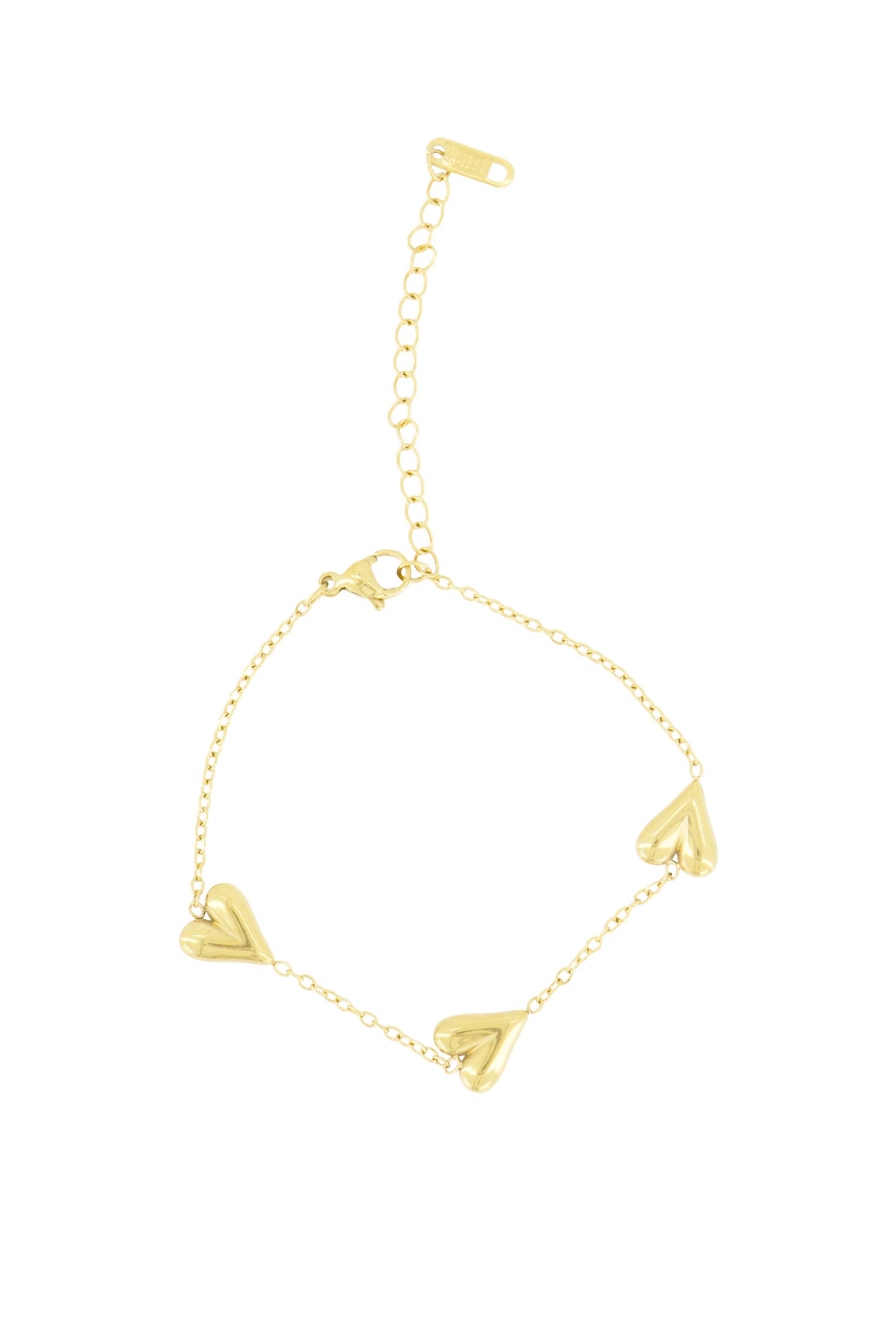 Zusss armband met 3 hartjes in goud, subtiel en tijdloos