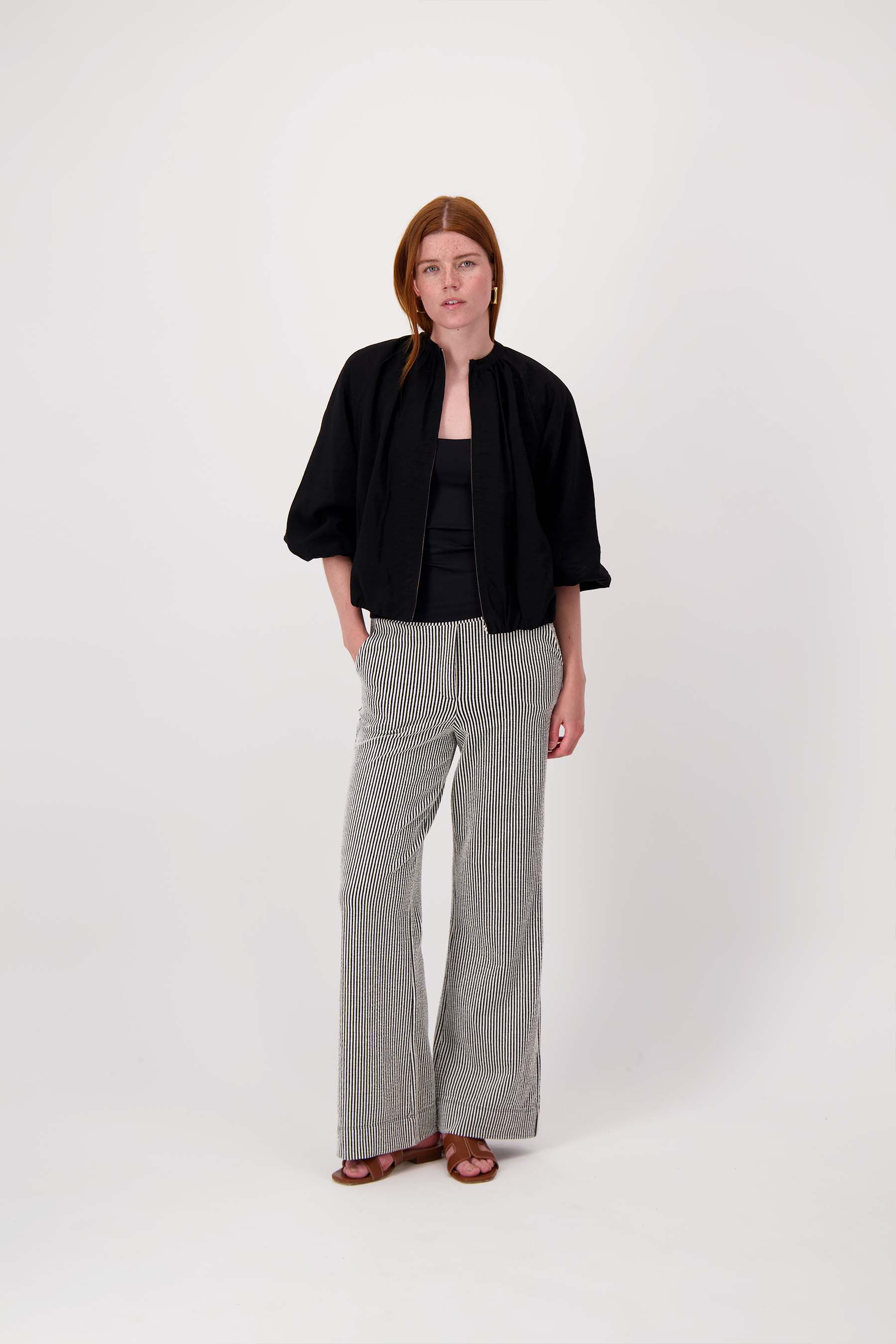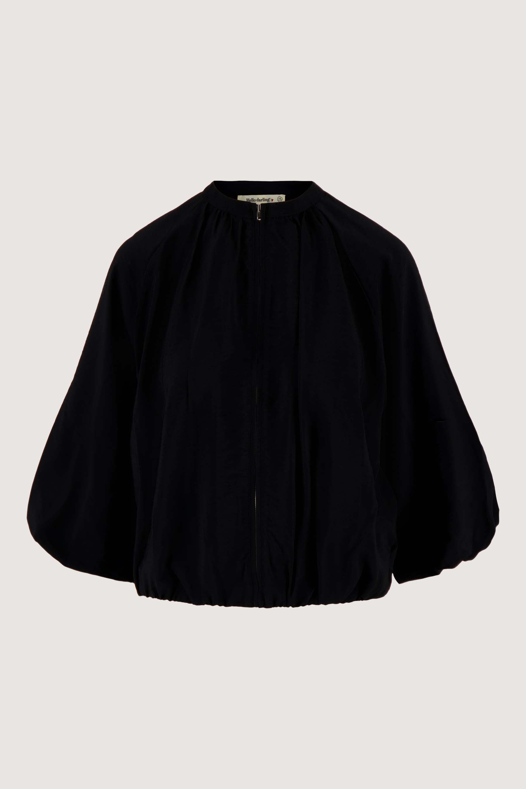 De Zusss ballon bomber is jouw perfecte jas voor elk seizoen. Deze zwarte ballon bomber straalt eenvoud en stijl uit met een fijne rits, een korte pasvorm en ruime mouwen die zorgen voor comfort en bewegingsvrijheid. De gesloten ronde hals geeft een mooi, klassiek detail. De Zusss ballon bomber is een tijdloze toevoeging aan je garderobe, die je keer op keer met plezier draagt. Combineer onze ballon bomber met een van onze midi jurken of maxi jurken om je outfit helemaal af te maken.
