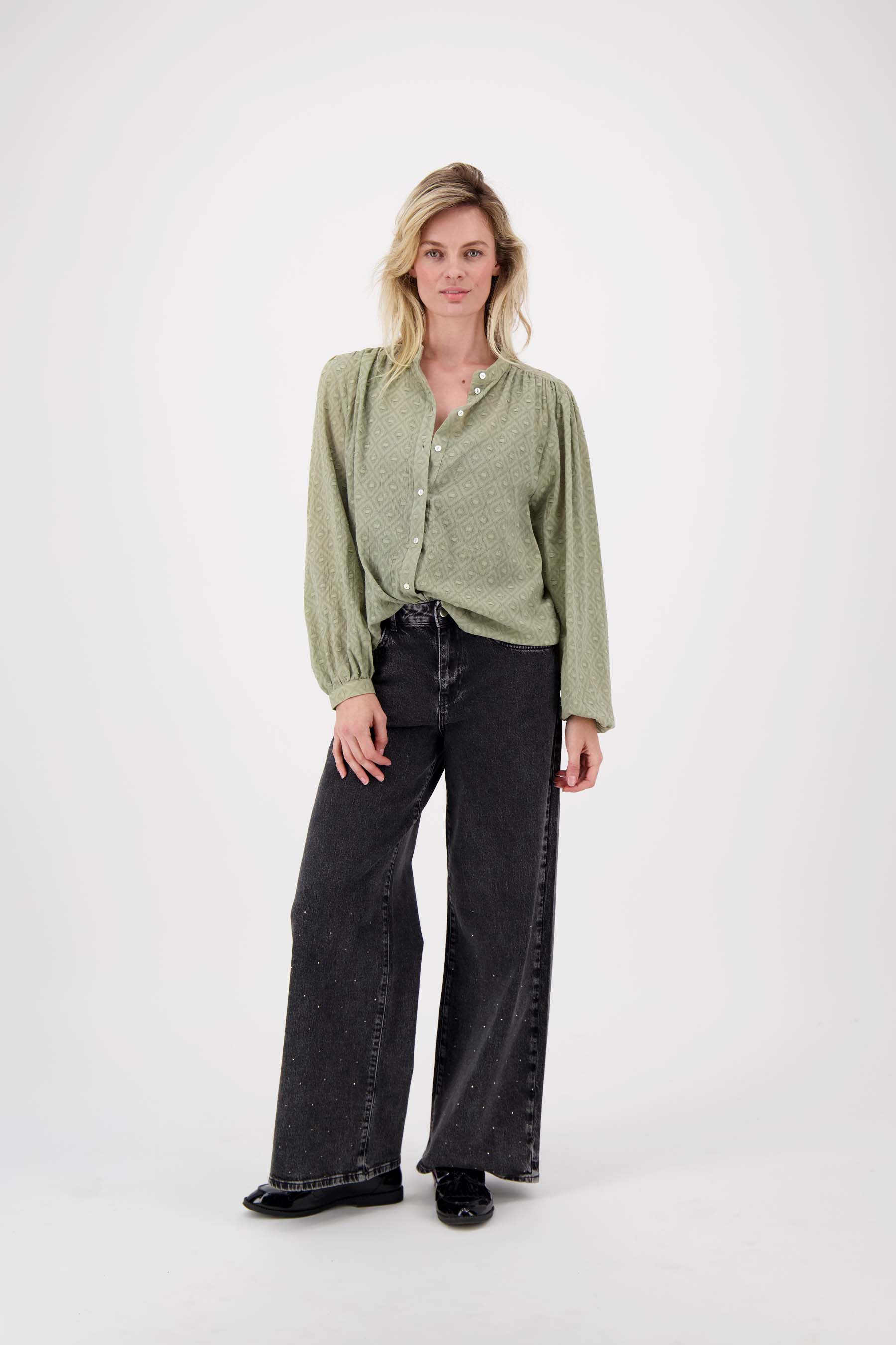 Zusss blouse in structuur lange mouw kakigroen