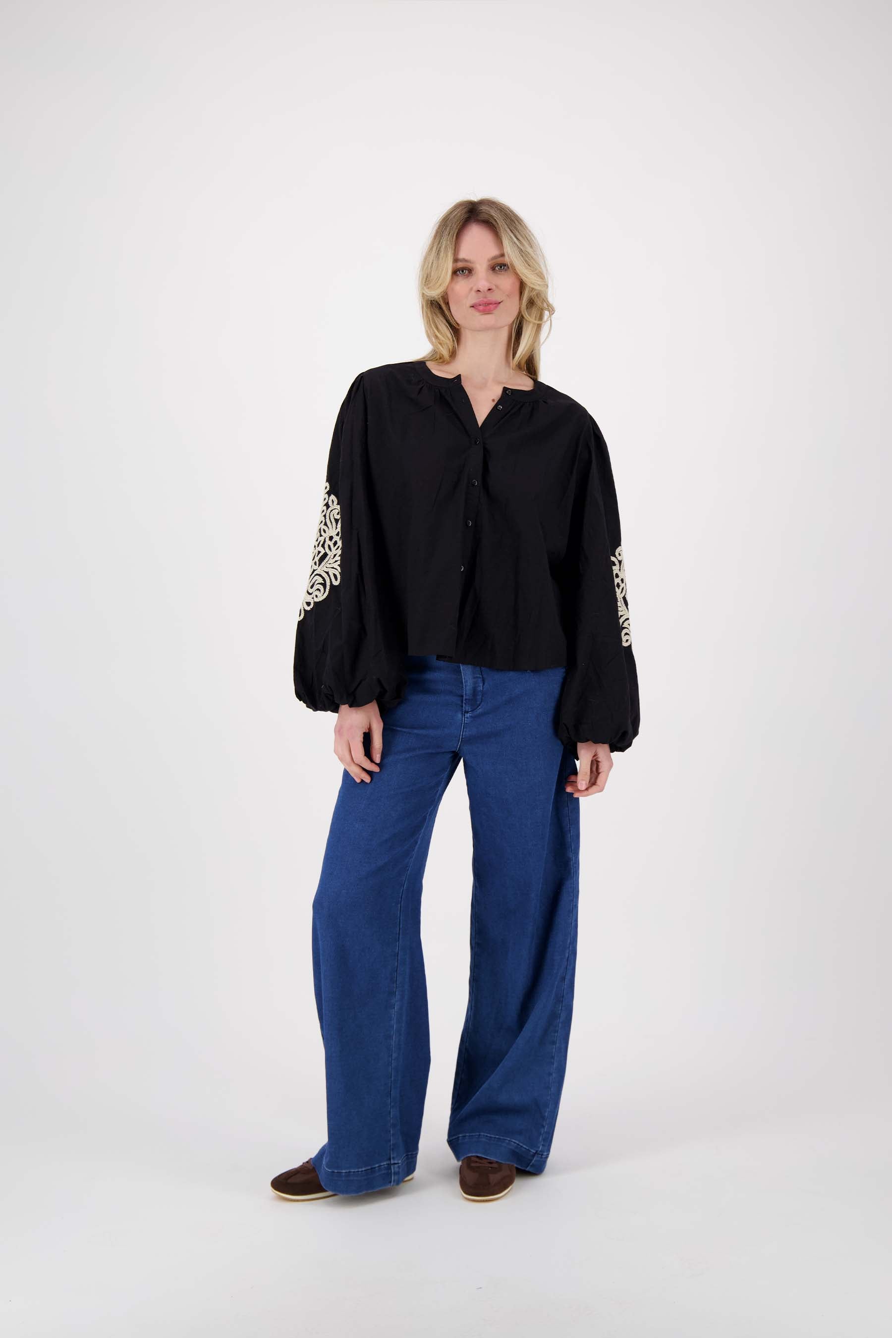 Zusss blouse met borduur mouwen voor stijlvolle basics