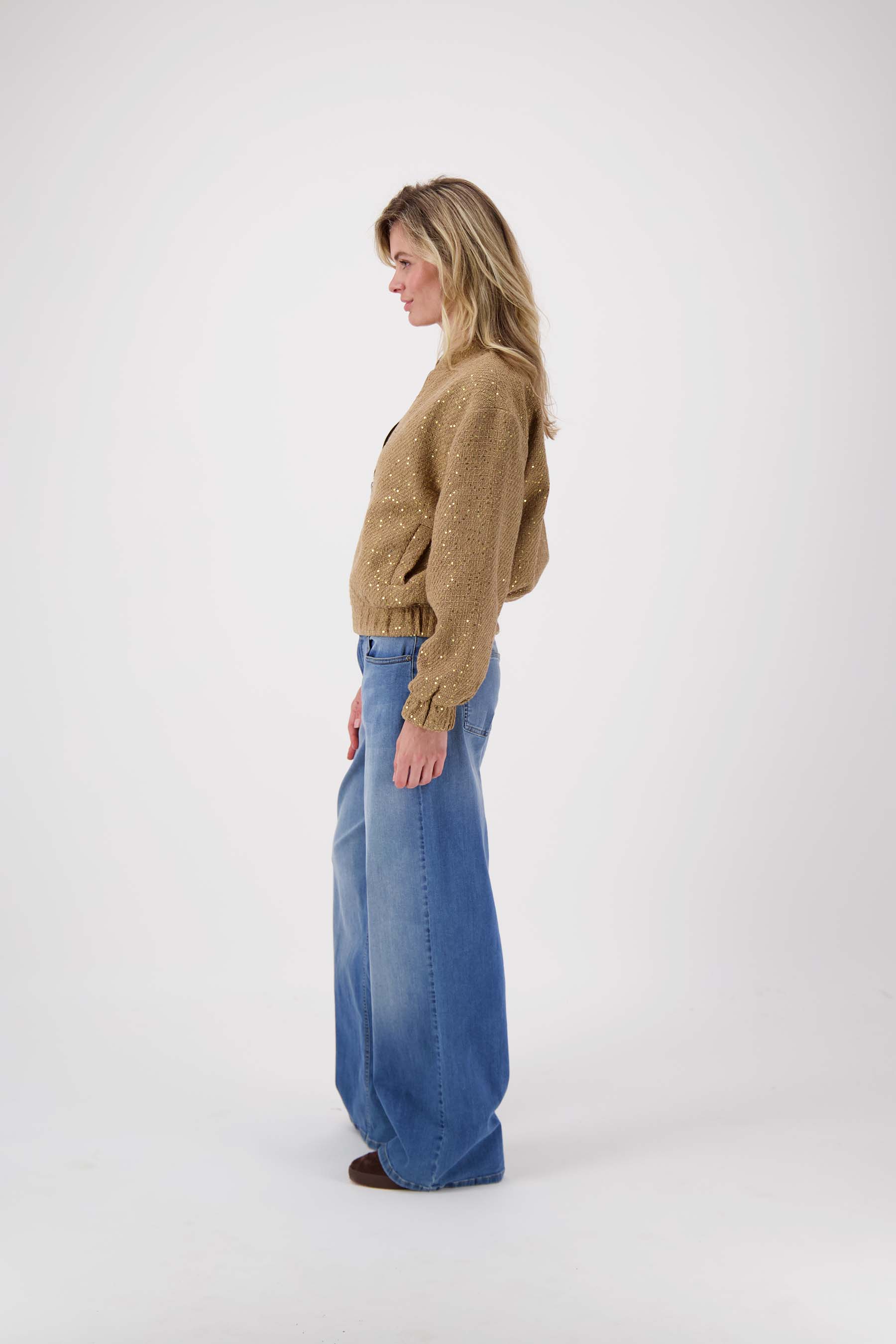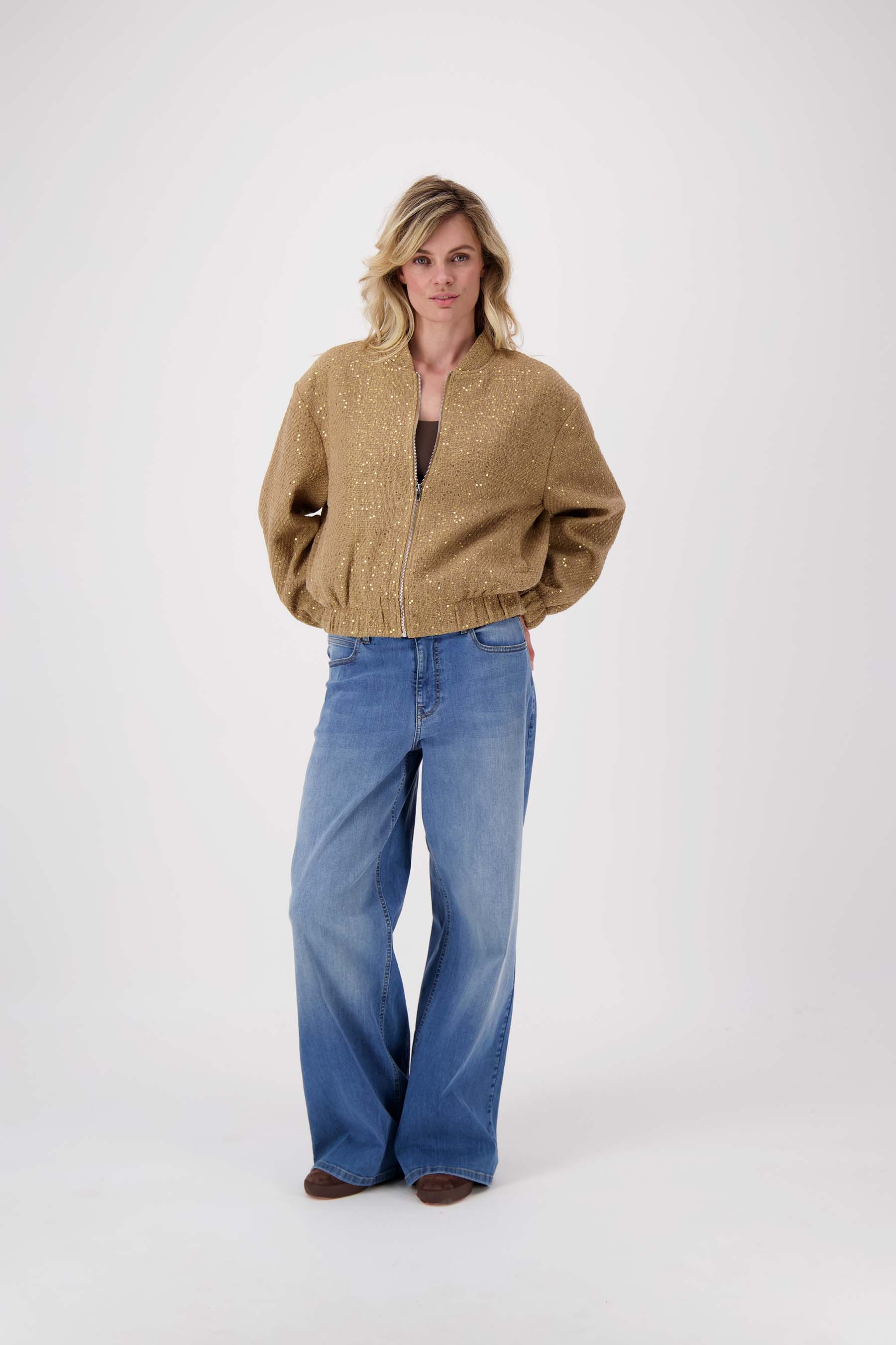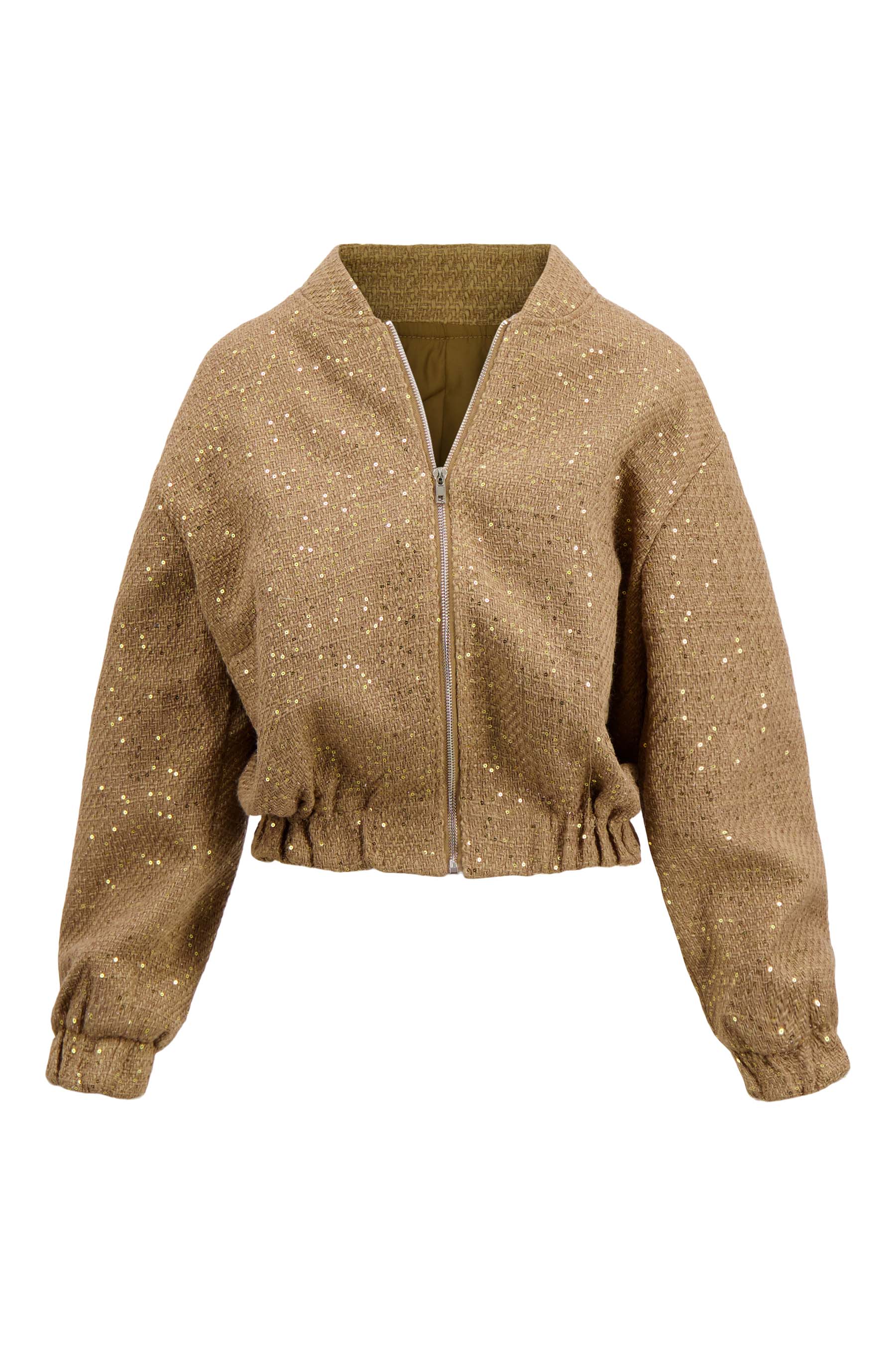 Zusss beige bomber jasje met sequins voor een sprankelende look