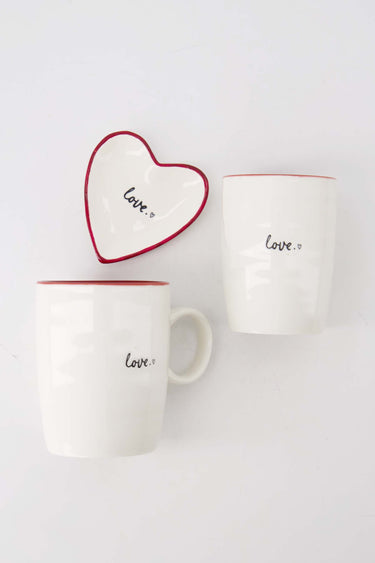 De Zusss cadeauset love springt eruit met zijn eigentijdse design en liefdevolle details. Deze cadeauset love bestaat uit twee witte mokken en een hartvormig schaaltje met een speelse rode rand en het woordje ‘love’ subtiel geplaatst. Perfect om je ochtend te beginnen met een warm gevoel of om cadeau te geven aan een speciaal iemand. De combinatie van wit en rood maakt deze cadeauset love extra bijzonder en tijdloos. Voeg een vleugje Zusss stijl toe aan je dagelijkse ritueel en bekijk ook onze andere mooie serviescollecties.