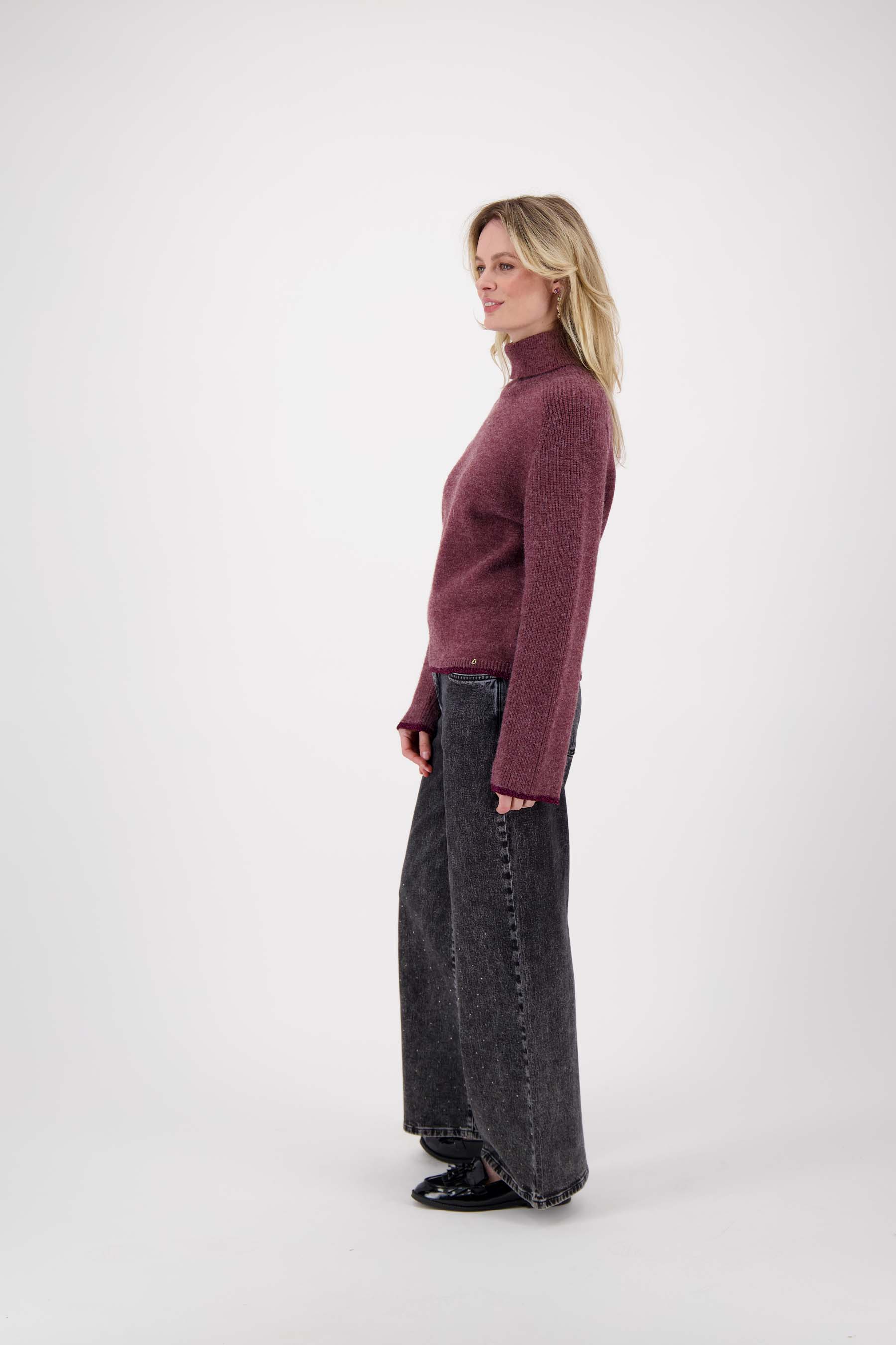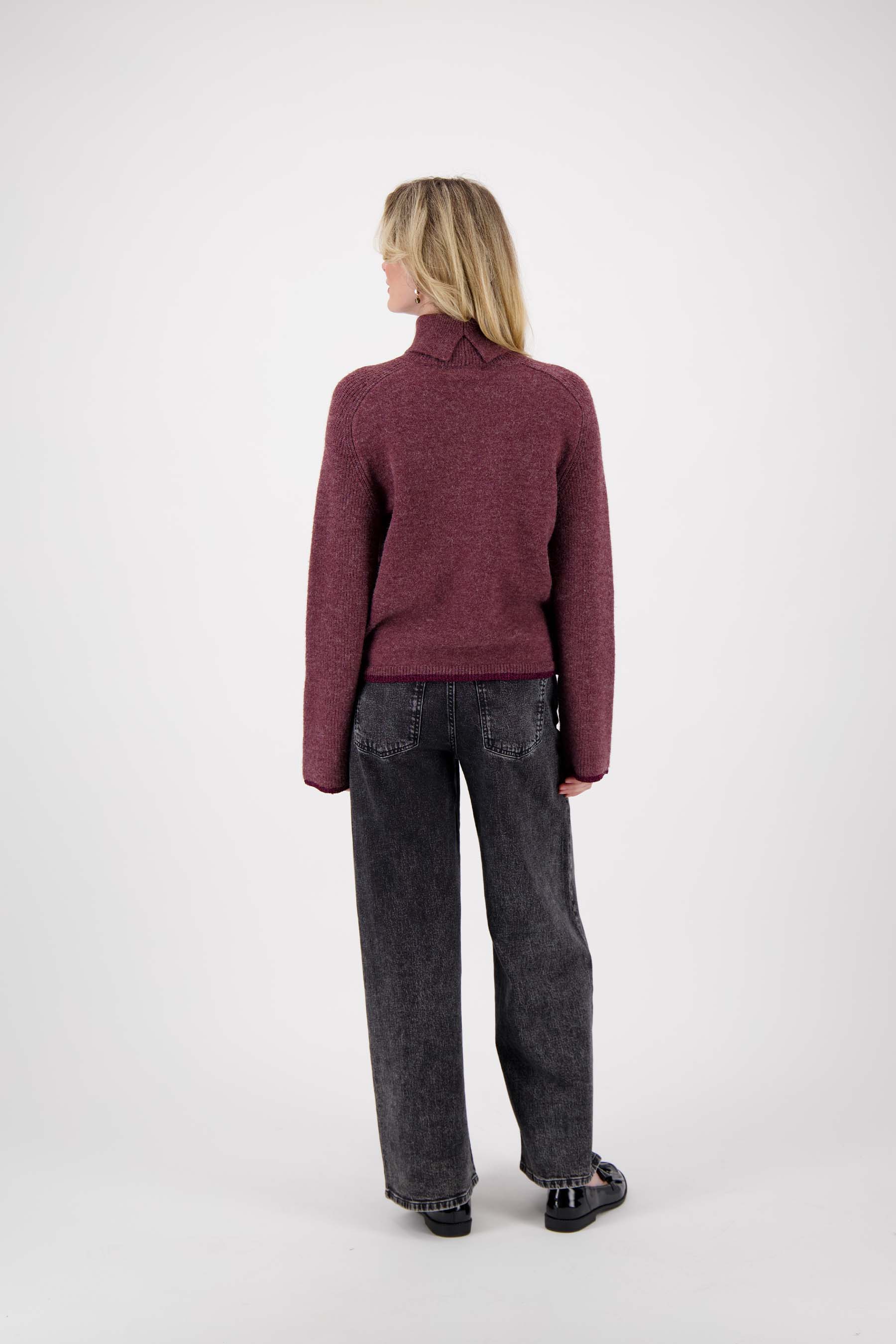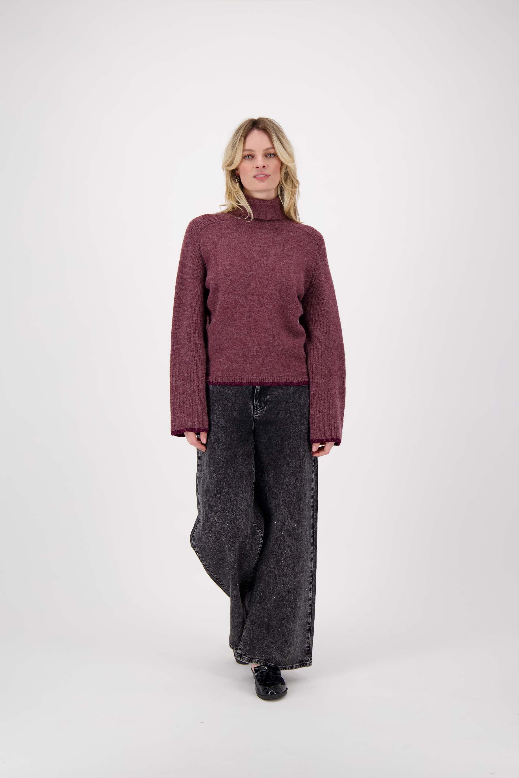Deze Zusss coltrui met gekleurde boord is ideaal voor wie warmte en comfort zoekt. De coltrui is uitgevoerd in een zachte aubergine tint, die makkelijk te combineren is met je favoriete jasjes en broeken. De subtiele gekleurde boord maakt deze trui net even anders dan anders. Met een fijne pasvorm en een zachte stof is deze coltrui een fijne basis in je garderobe deze herfst en winter.