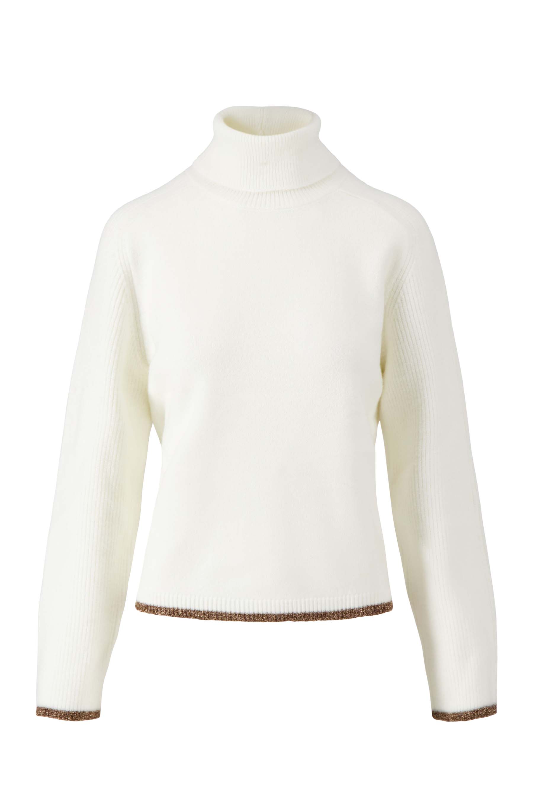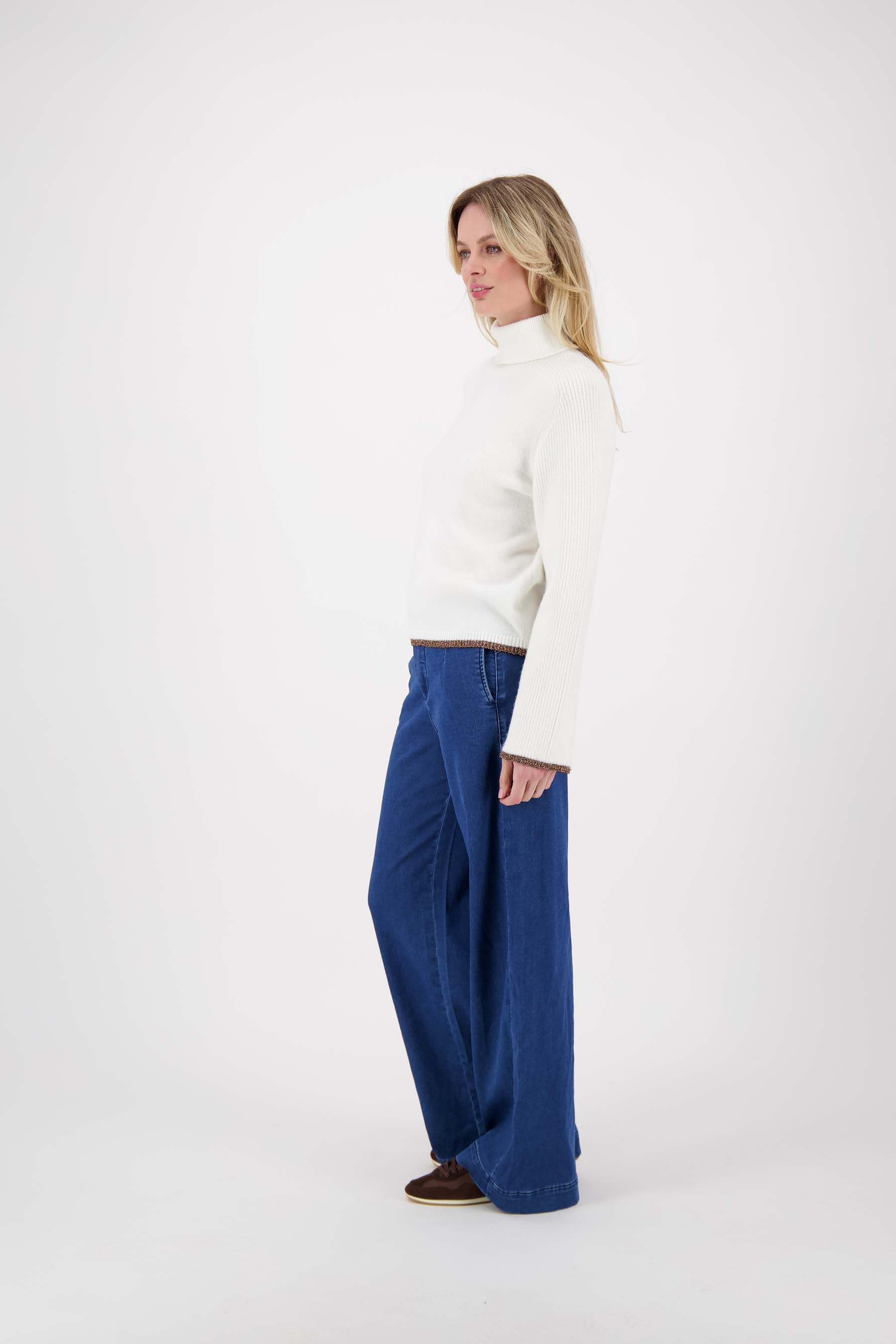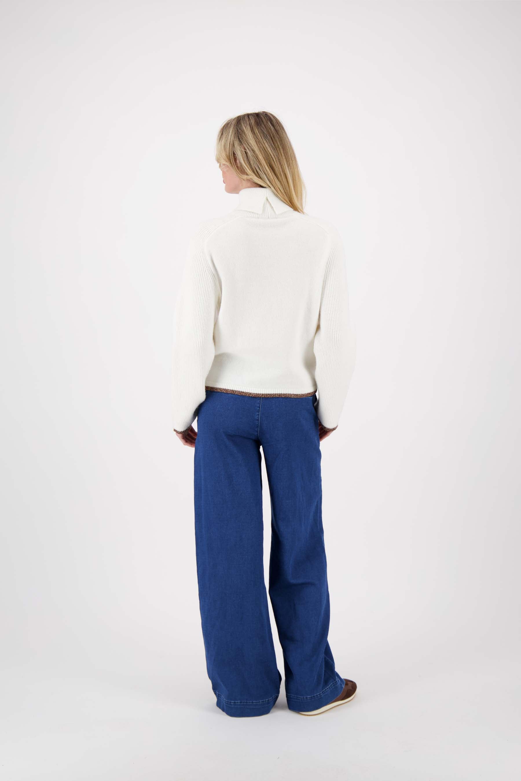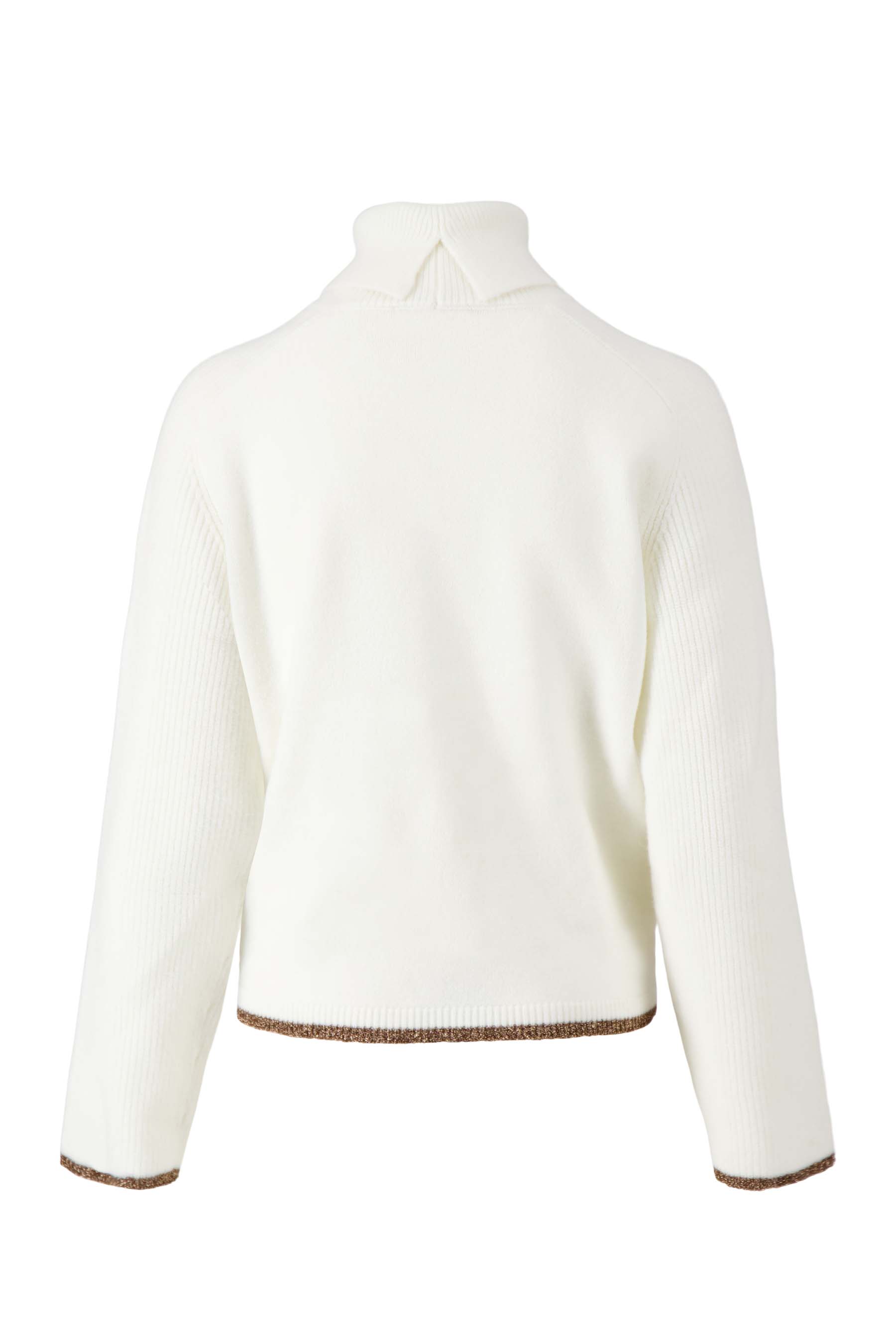 Deze coltrui met gekleurde boord van Zusss is perfect voor koele dagen. De coltrui combineert het zachte off white met een subtiele contrastkleur aan de boord, wat het geheel een speelse touch geeft. Dankzij de fijne structuur zit hij heerlijk comfortabel en is hij eenvoudig te combineren met jouw favoriete broeken of rokken. De coltrui met gekleurde boord is een tijdloze basic die je niet wilt missen deze winter.