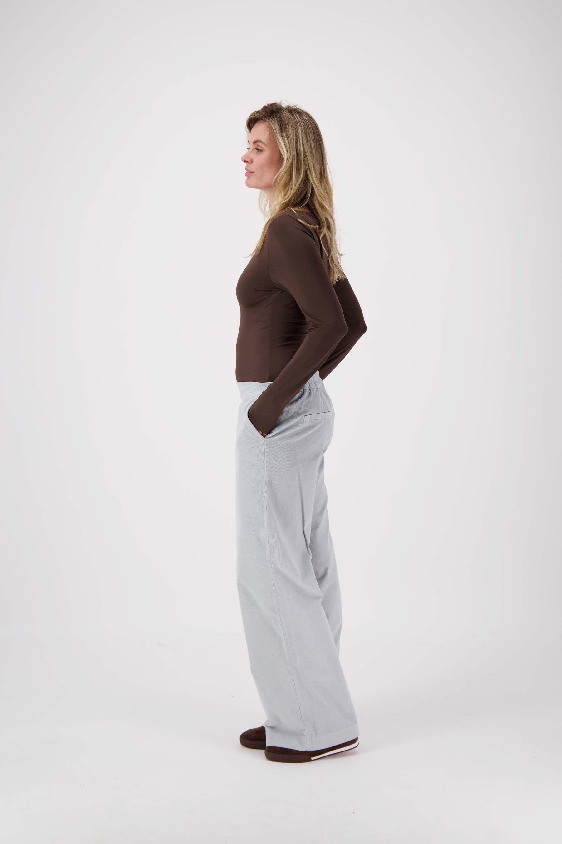 De Zusss corduroy broek combineert comfort en stijl dankzij de zachte middengrijze kleur en het gebruik van elastaan voor een fijne stretch. Deze corduroy broek voelt heerlijk aan en is ideaal voor dagelijks gebruik als basic kledingstuk. De subtiele ribstructuur van het corduroy geeft net dat beetje extra karakter aan je outfit. Door de combinatie van comfort en een rustige uitstraling past deze broek perfect binnen een casual en stoere garderobe.