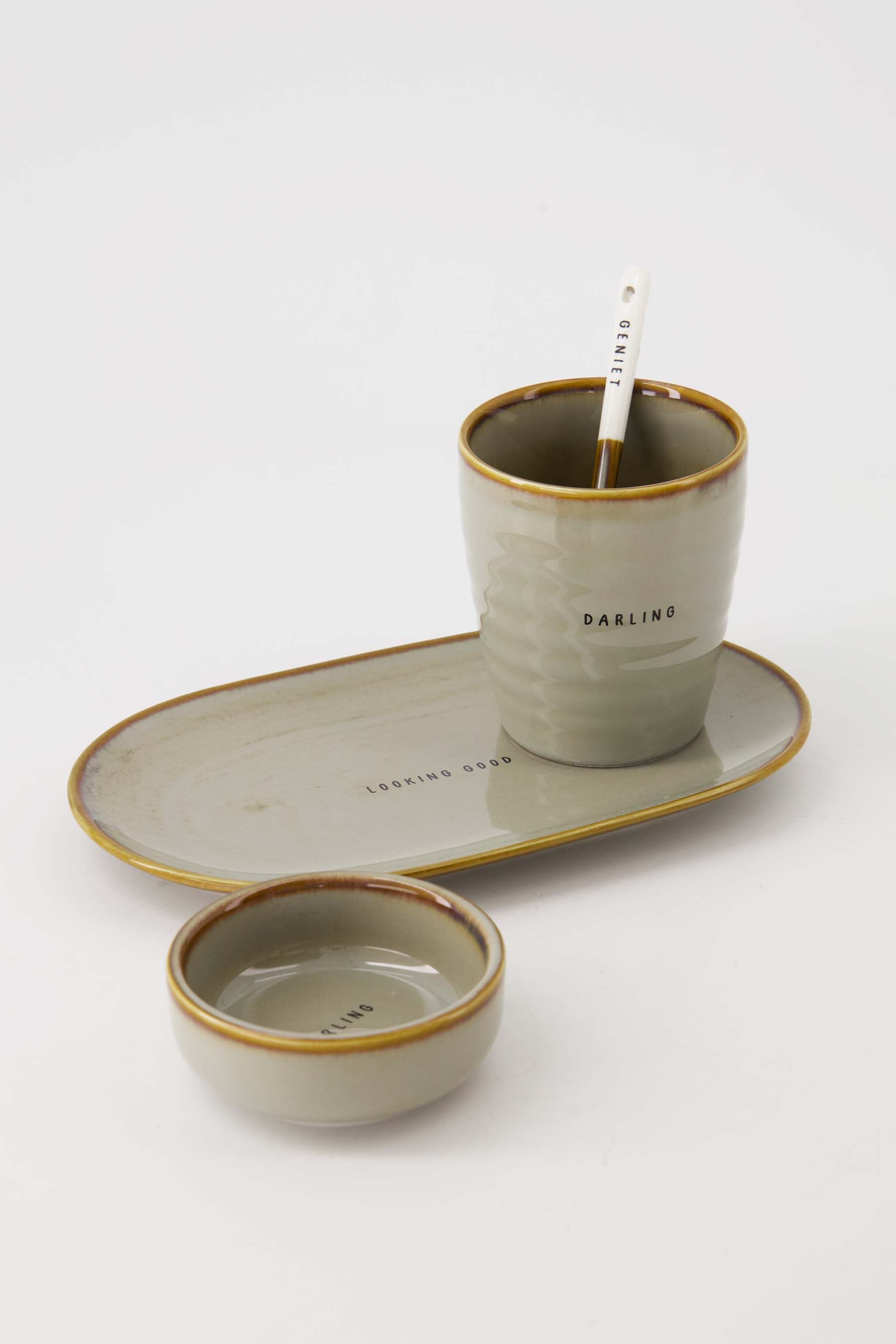 Het Zusss dipschaaltje Darling is een charmante toevoeging aan jouw keukencollectie. Dit dipschaaltje heeft een zachte grijsblauwe kleur met een warme, bruine rand en een subtiele tekst 'Darling' in het midden. Ideaal voor het serveren van sauzen of kleine snacks, het past perfect bij andere keukenaccessoires van Zusss. Het dipschaaltje combineert functionaliteit met een speels, basic design, waardoor het een uniek en stoer element aan je tafel geeft. De grijsblauwe tint maakt het makkelijk te mixen met verschillende stijlen in je keuken.