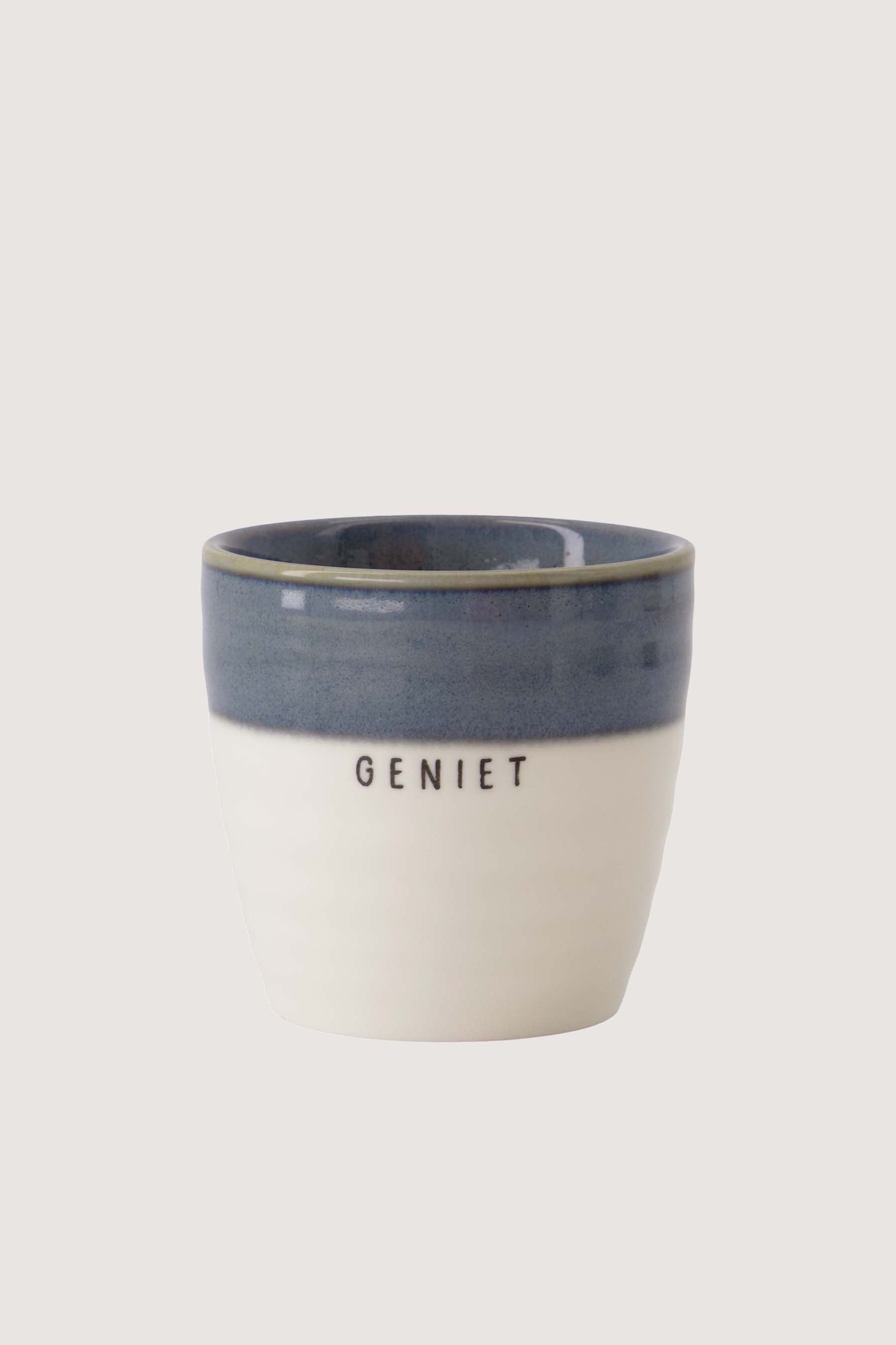 De Zusss espressomok genieten is perfect voor wie elke koffiepauze waardeert. Deze espressomok genieten is gemaakt van hoogwaardig keramiek in de kleuren wit en blauw en heeft een compacte maat van ongeveer 6x6 cm. Met de subtiele tekst "geniet" op de voorkant brengt deze espressomok genieten extra sfeer aan je tafel. Geniet extra van jouw espresso in deze stijlvolle en duurzame Zusss espressomok genieten. Combineer de mok met een van onze theemokken voor een leuk momentje samen.