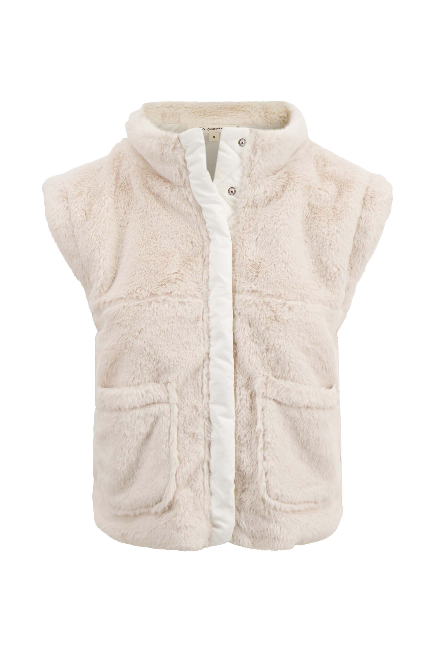 De Zusss faux fur gilet is een heerlijk zachte en warme toevoeging aan je kledingkast. Deze gilet in een zachte beige kleur voelt comfortabel en knus dankzij de fijne imitatiebont stof. Perfect voor de koudere dagen als tussenstuk of casual buitenlaag. Het basic design met praktische zakken maakt deze gilet een stoere en fijne keuze binnen de kleding categorie. Combineer met andere vesten voor een extra warme look. De Zusss faux fur gilet brengt warmte en stijl samen, ideaal voor een eigenwijze winteroutfit.