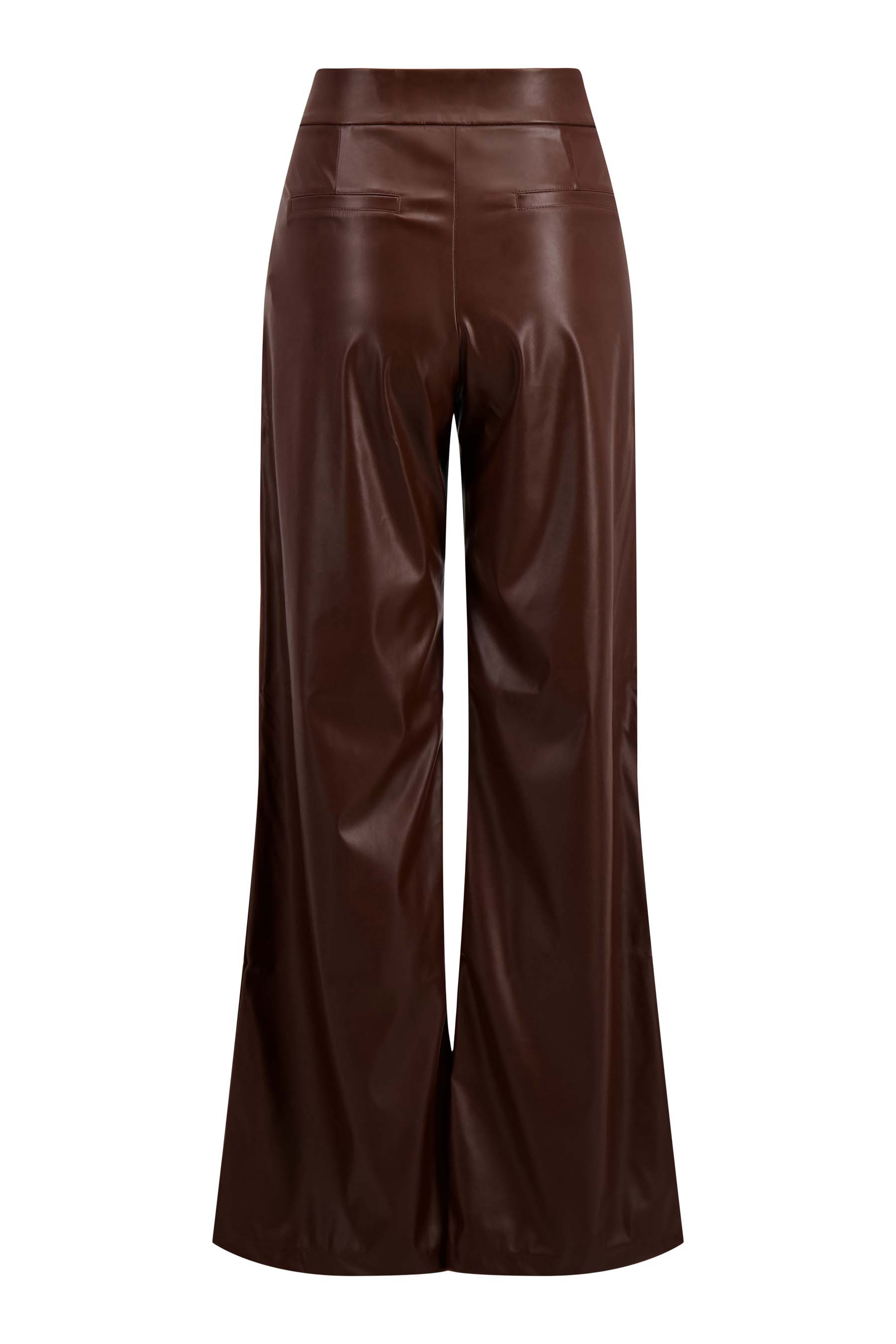 De Zusss faux glans leren broek geeft je outfit een unieke twist. Deze wideleg broek combineert comfort met een opvallende uitstraling dankzij de glanzende finish. Het model is ideaal voor wie houdt van een basic broek met een stoer randje. De warme mid brown kleur maakt deze broek makkelijk te combineren met veel stijlen. Perfect binnen onze broeken collectie voor wie kwaliteit en stijl zoekt.