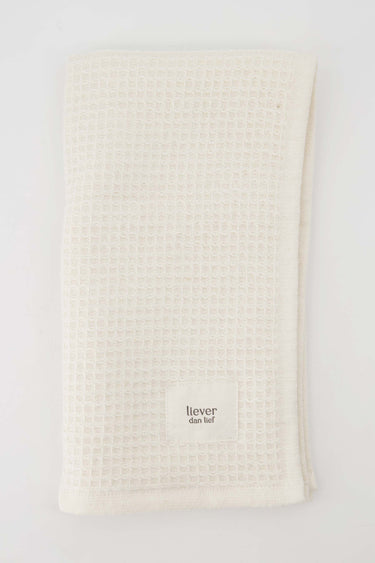 Dit Zusss gastendoekje off white zorgt voor een gastvrij gevoel in huis. Het neutrale off white past overal bij en voegt een subtiele warmte toe. Het fijne wafelstructuur geeft niet alleen een zachte touch, maar zorgt ook voor goede vochtopname. Met het kleine label “liever dan lief” maakt dit gastendoekje jouw badkamer of keuken nét een stukje sfeervoller. Perfect om je gasten op te vangen en je interieur een liefdevolle finishing touch te geven.