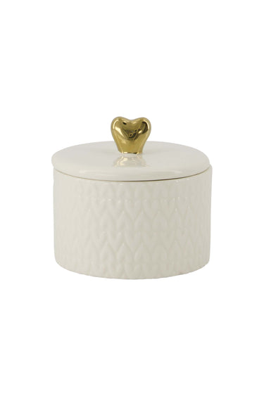 De Zusss geurkaars keramiek met deksel brengt warmte en sfeer in je woonkamer. Deze geurkaars valt op door zijn fijne witte keramieken pot met een subtiel hartmotief en een goudkleurig hartje op het deksel. De combinatie van wit en goud maakt deze geurkaars een stijlvol accent in elk interieur. Perfect om een gezellige en rustgevende ambiance te creëren, terwijl het keramiek zorgt voor een luxueuze uitstraling. Laat de Zusss geurkaars keramiek je woonruimte verfraaien met een zachte, uitnodigende geur.