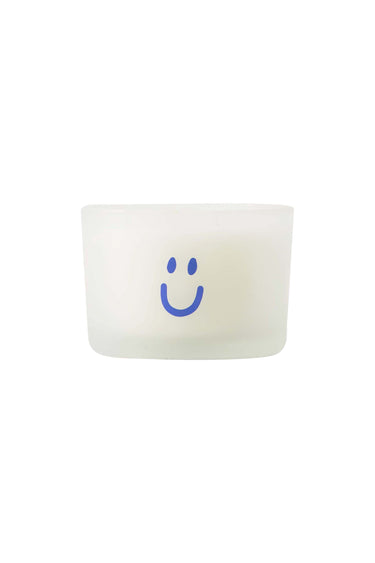 geurkaarsje glas smiley wit/blauw
