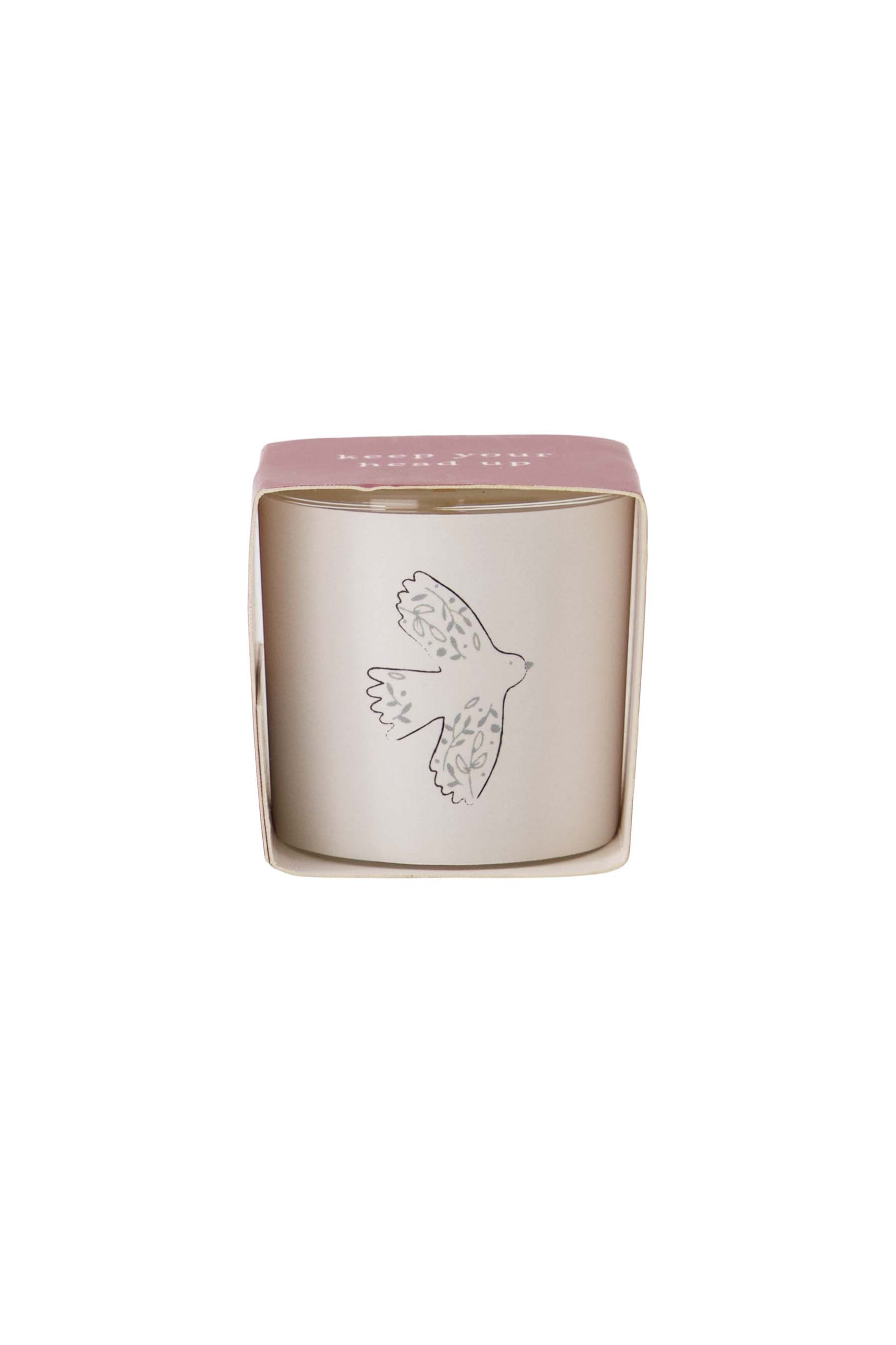 Het Zusss geurkaarsje met keep your head up is een subtiele eyecatcher voor in je woonkamer. Dit geurkaarsje brengt warmte en sfeer met een fijne geur, verpakt in een wit glaasje met een rood kartonnen wikkel. Het simpele ontwerp met vogelillustratie maakt het een stijlvol accessoire dat je elke dag een kleine reminder geeft. Het Zusss geurkaarsje past perfect bij andere woonaccessoires en zorgt voor een aangename geurbeleving in huis.