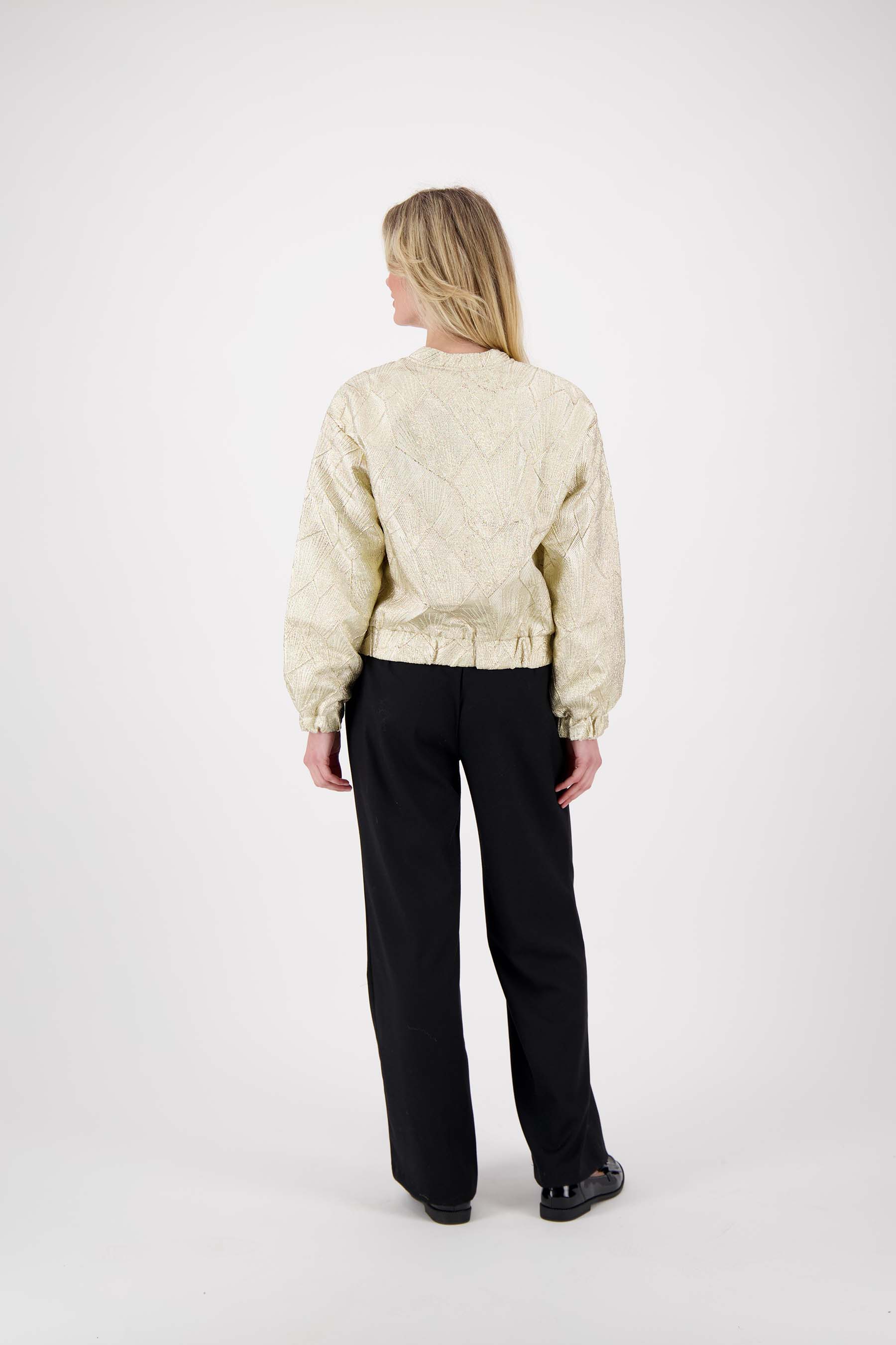 Het Zusss jacquard jasje is perfect voor wie een beetje extra wil zonder over de top te gaan. Dit jasje combineert de luxe van jacquard met een subtiele glans, ideaal voor iedere gelegenheid. Het jasje komt in een zachte kit/zilveren kleur die makkelijk te combineren is. Draag het als een stijlvol accent over een eenvoudige outfit voor een herkenbare Zusss-touch. Het jacquard jasje biedt comfort met een unieke uitstraling die jouw garderobe net dat beetje anders maakt.