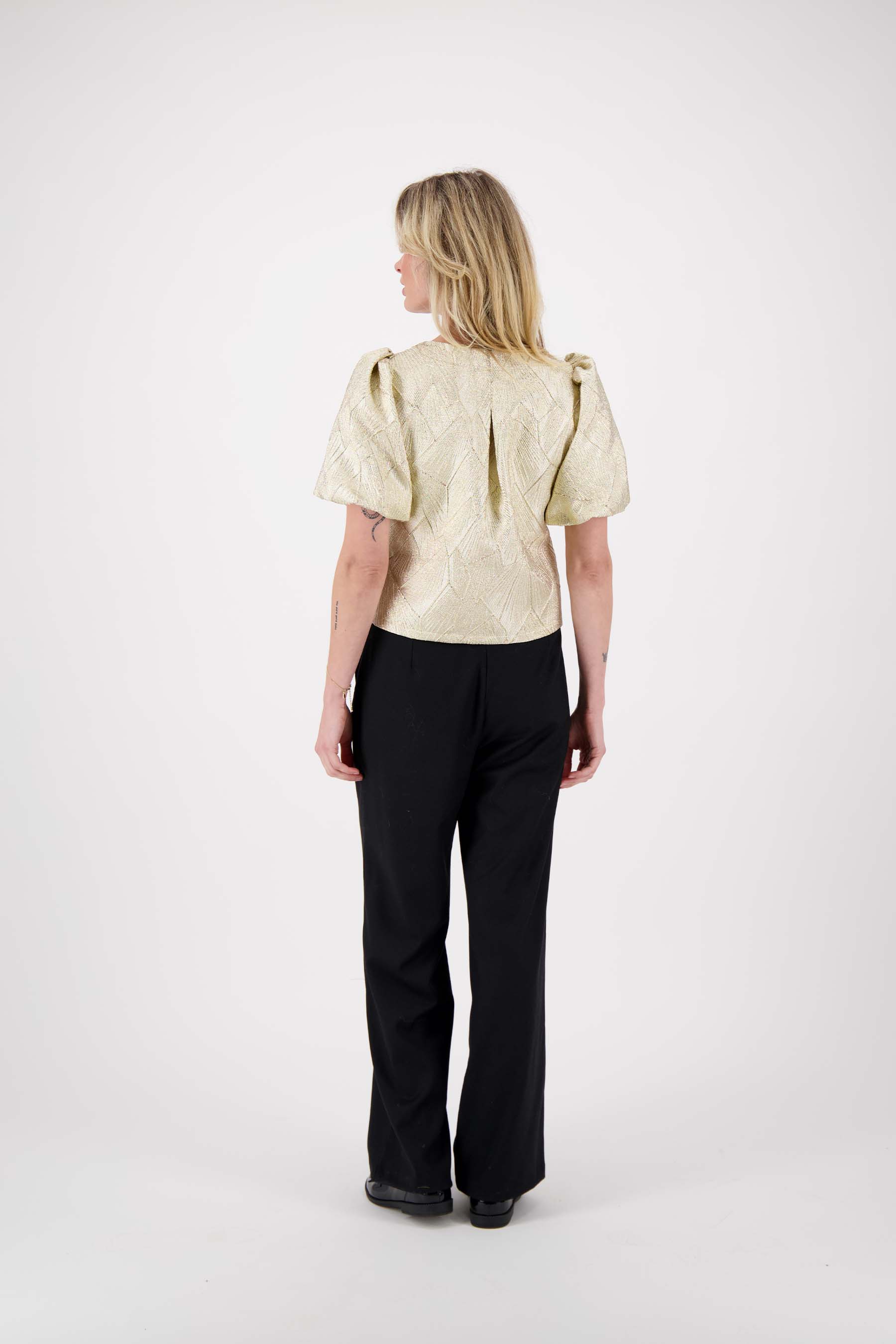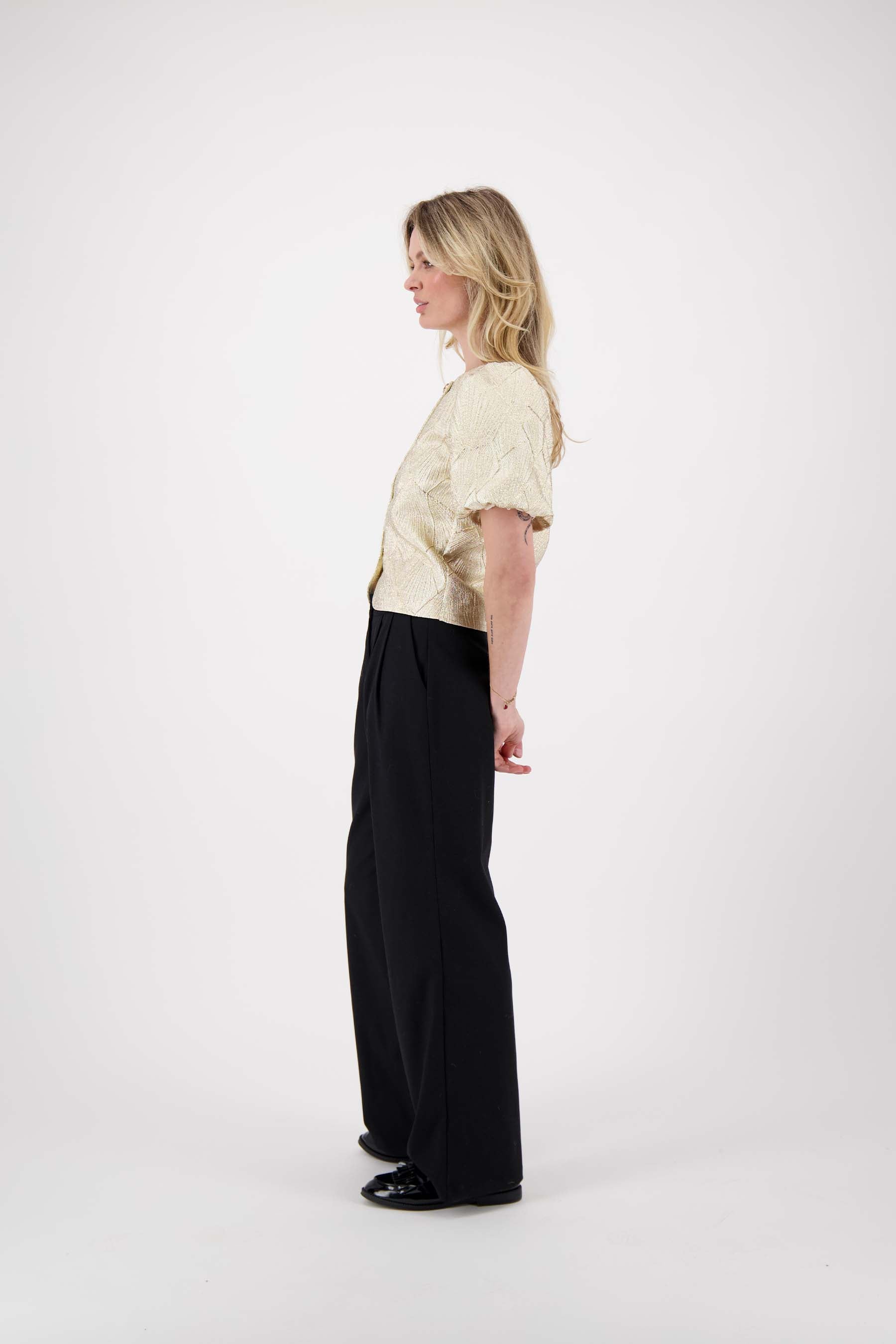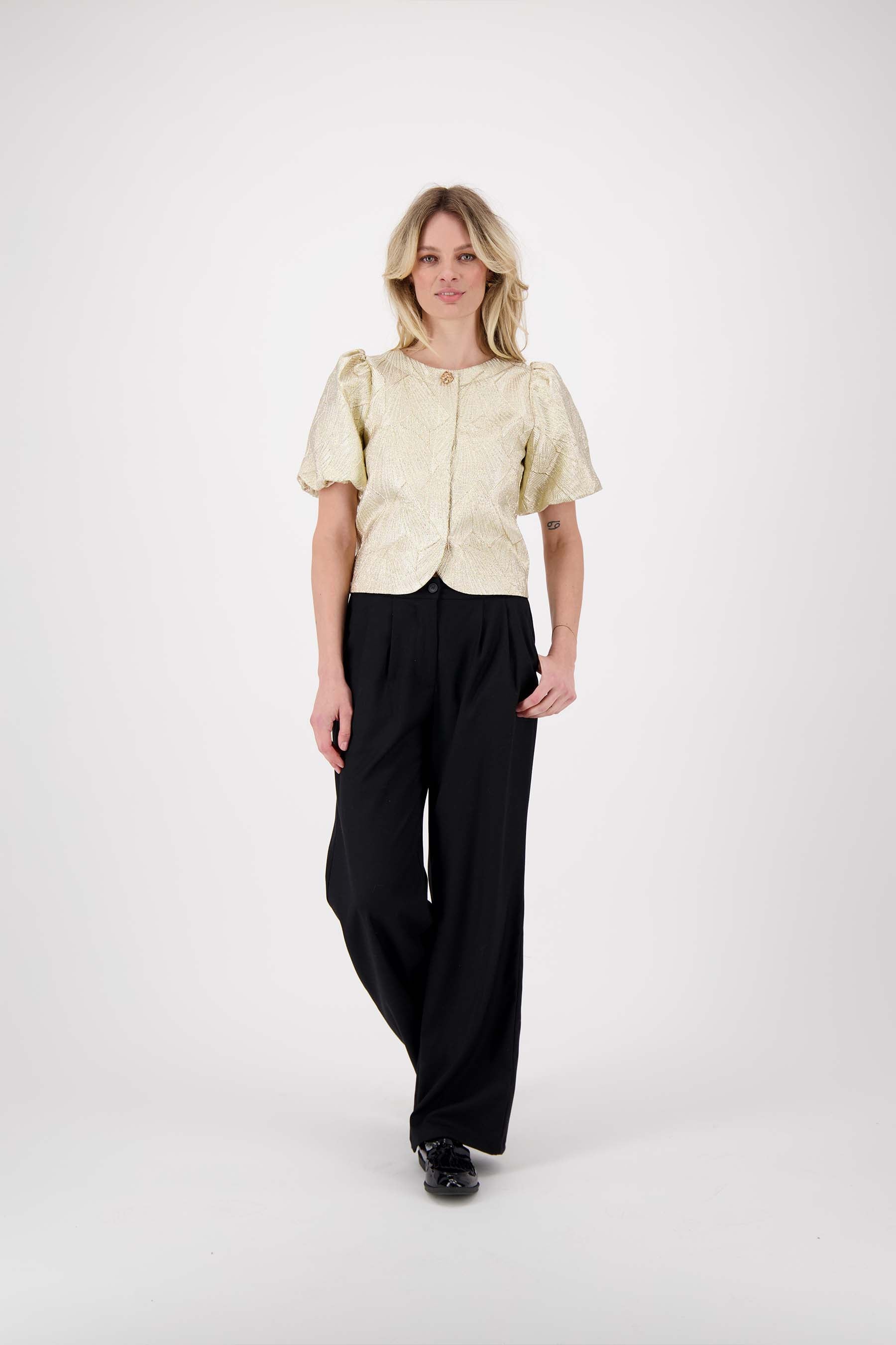 Zusss jacquard glans jasje met pofmouw voor nét dat beetje anders