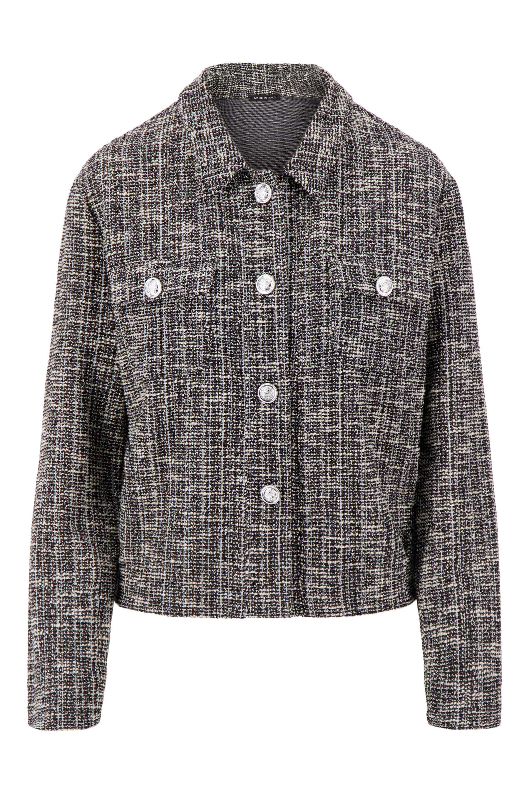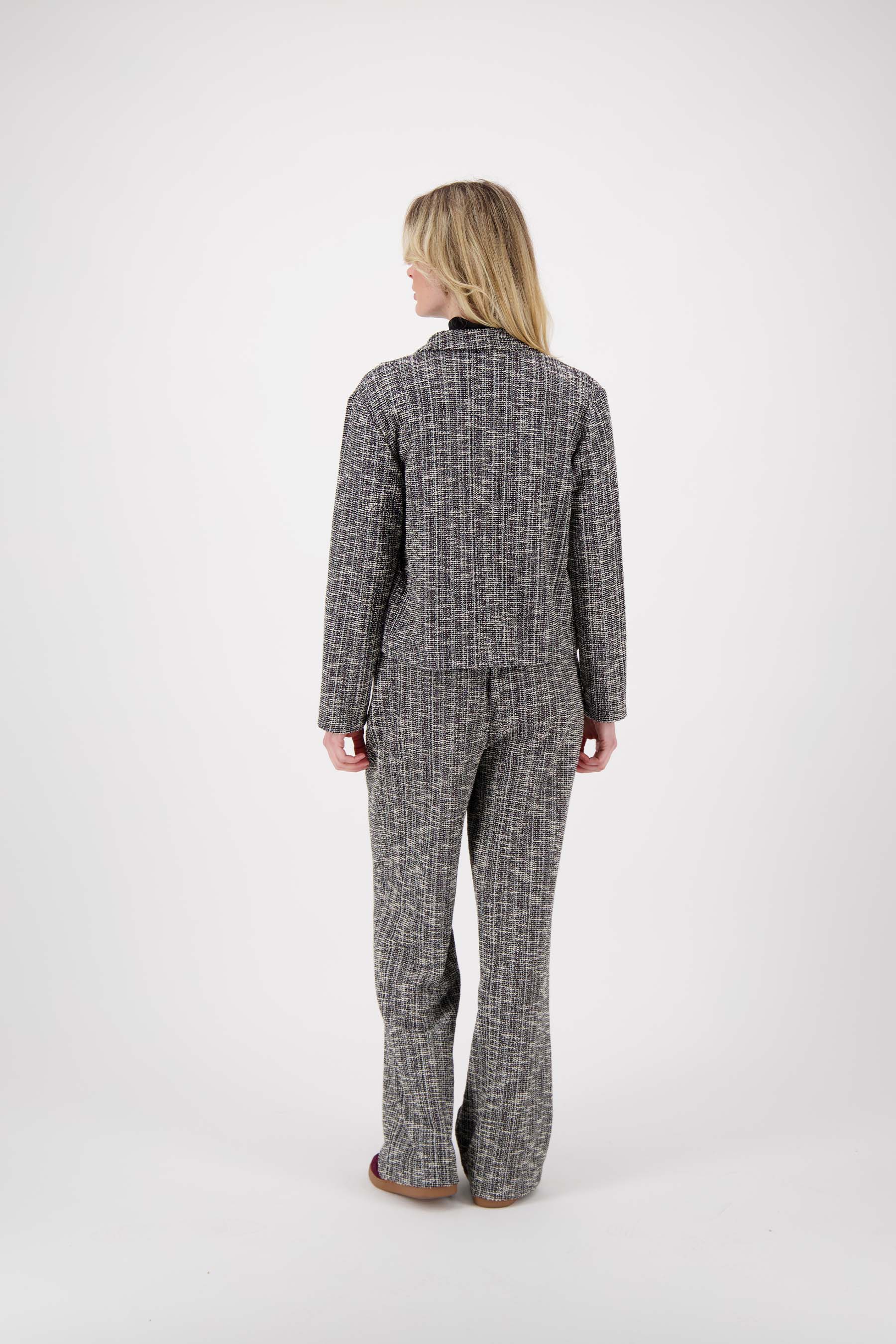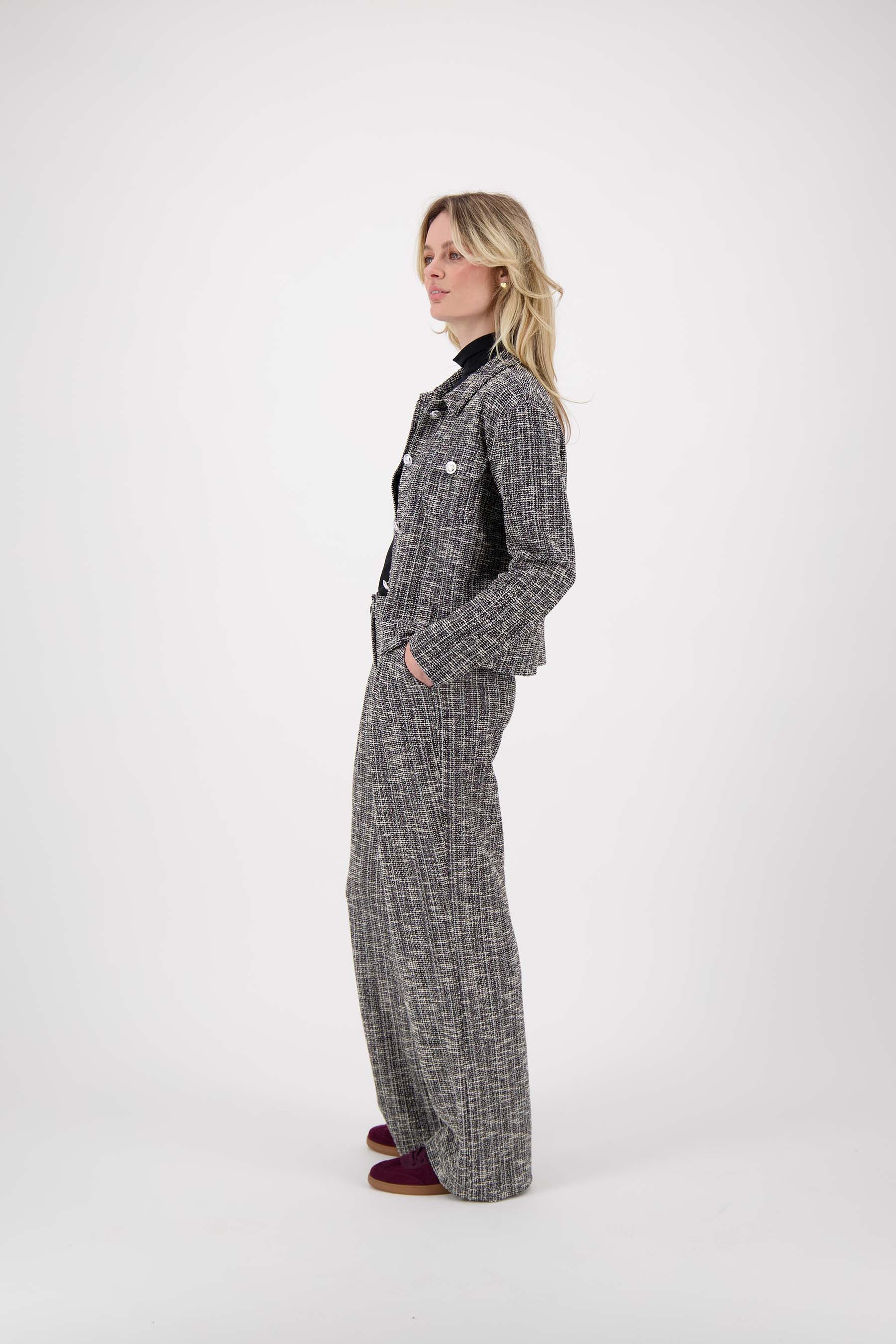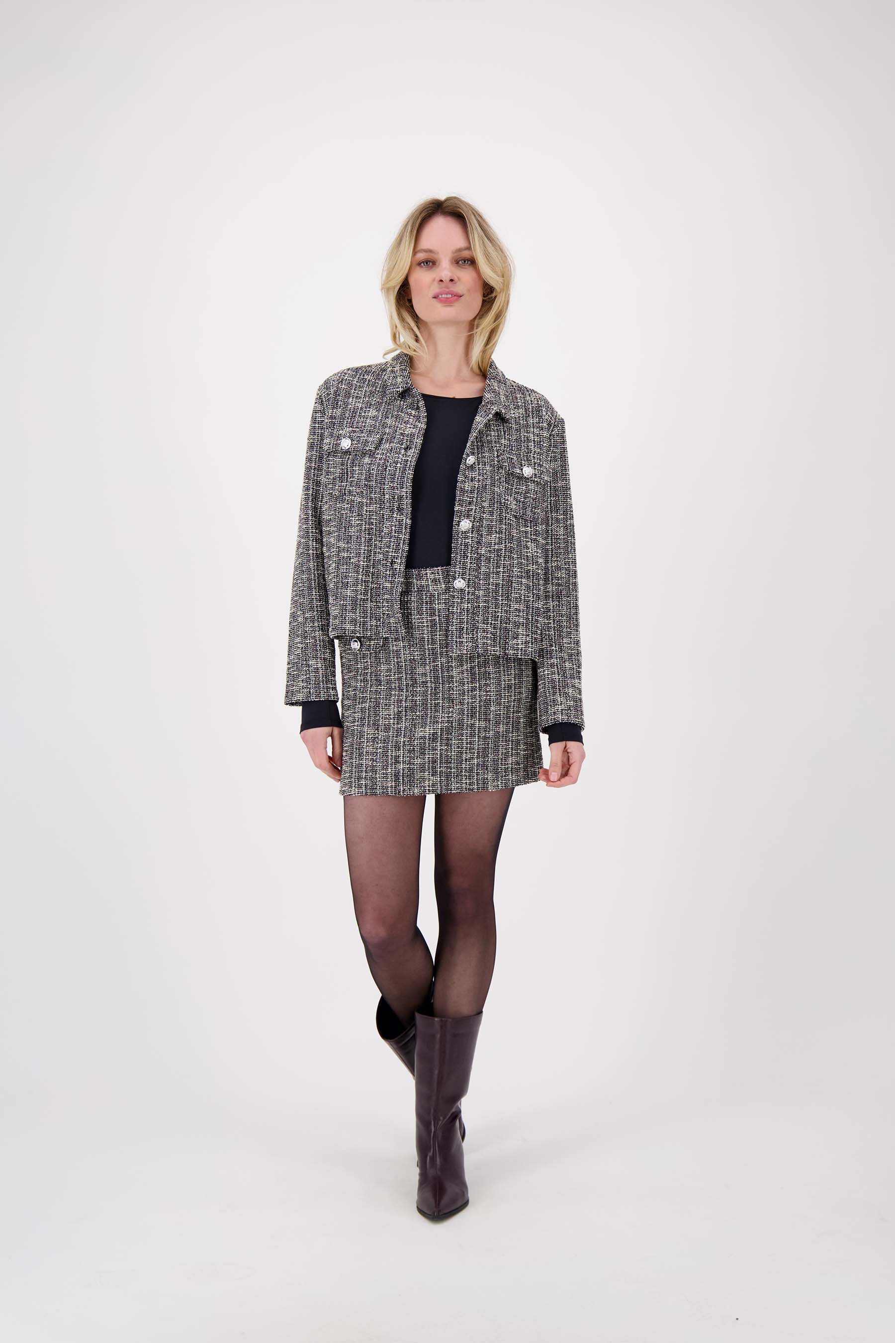 Dit jasje van tweed stof is een veelzijdige must-have in je garderobe. Het middengrijze jasje van Zusss combineert moeiteloos comfort met een subtiele printstructuur en zilverkleurige knopen die het geheel een vintage uitstraling geven. De tweed stof zorgt voor een warme en stoere vibe. Perfect te combineren met andere items uit onze collectie, dit jasje van tweed stof geeft je outfit dat extra beetje karakter en warmte.