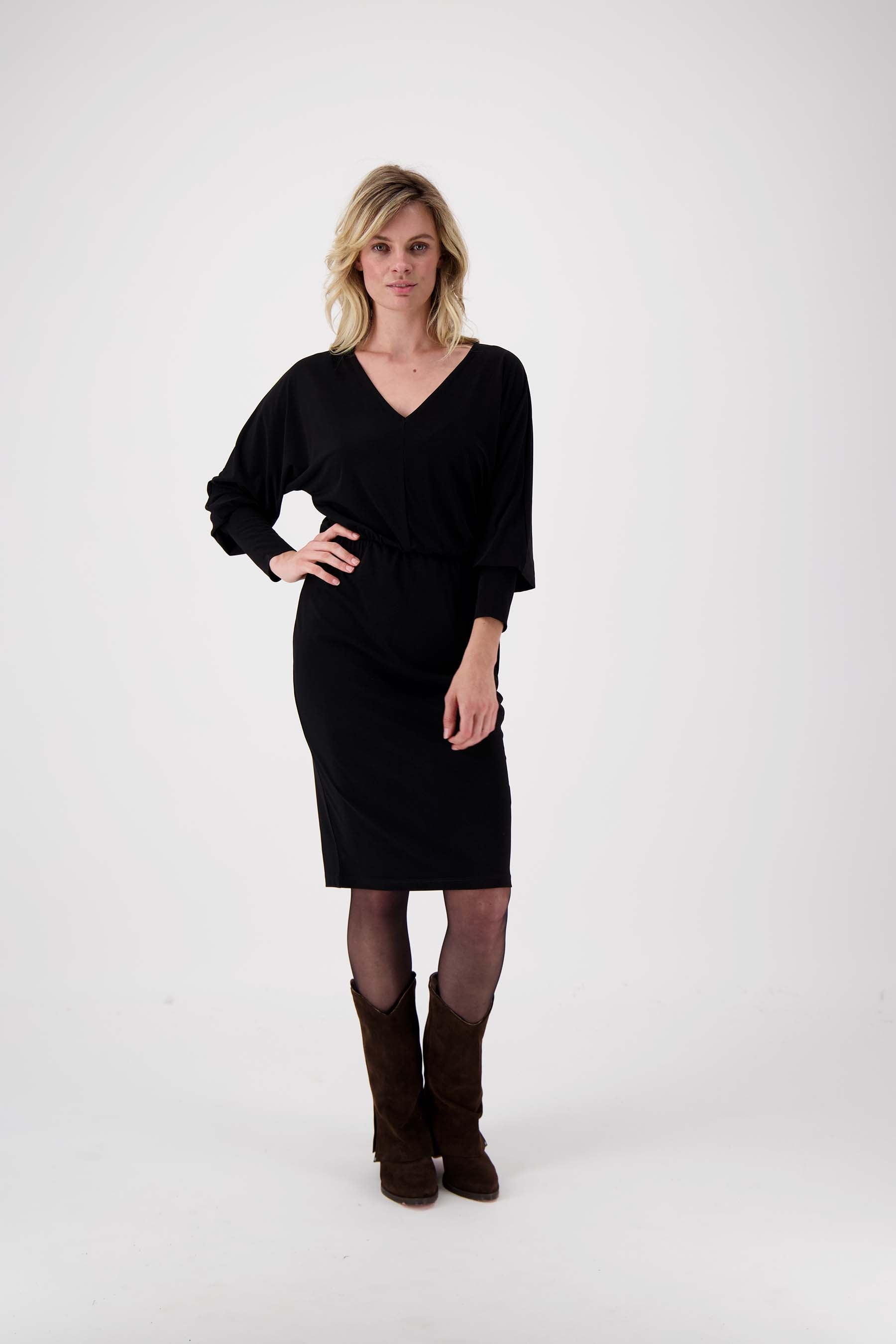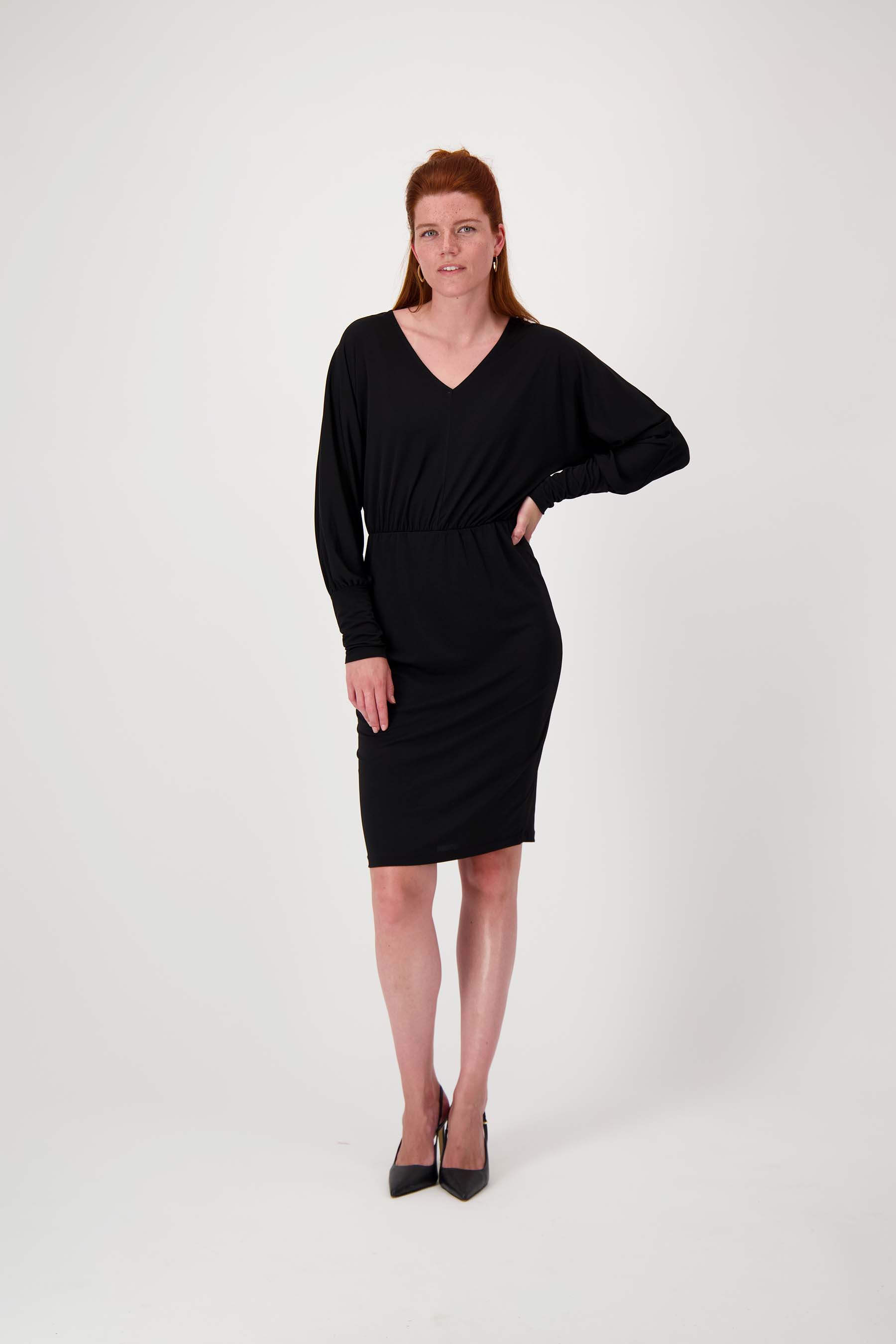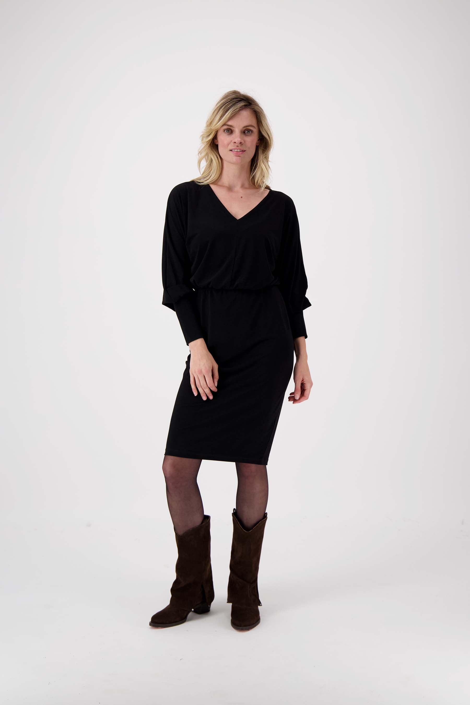 Zusss jersey jurk V-hals: tijdloos zwart comfort