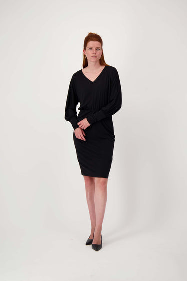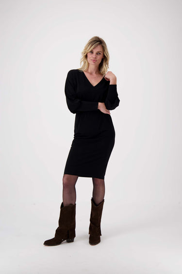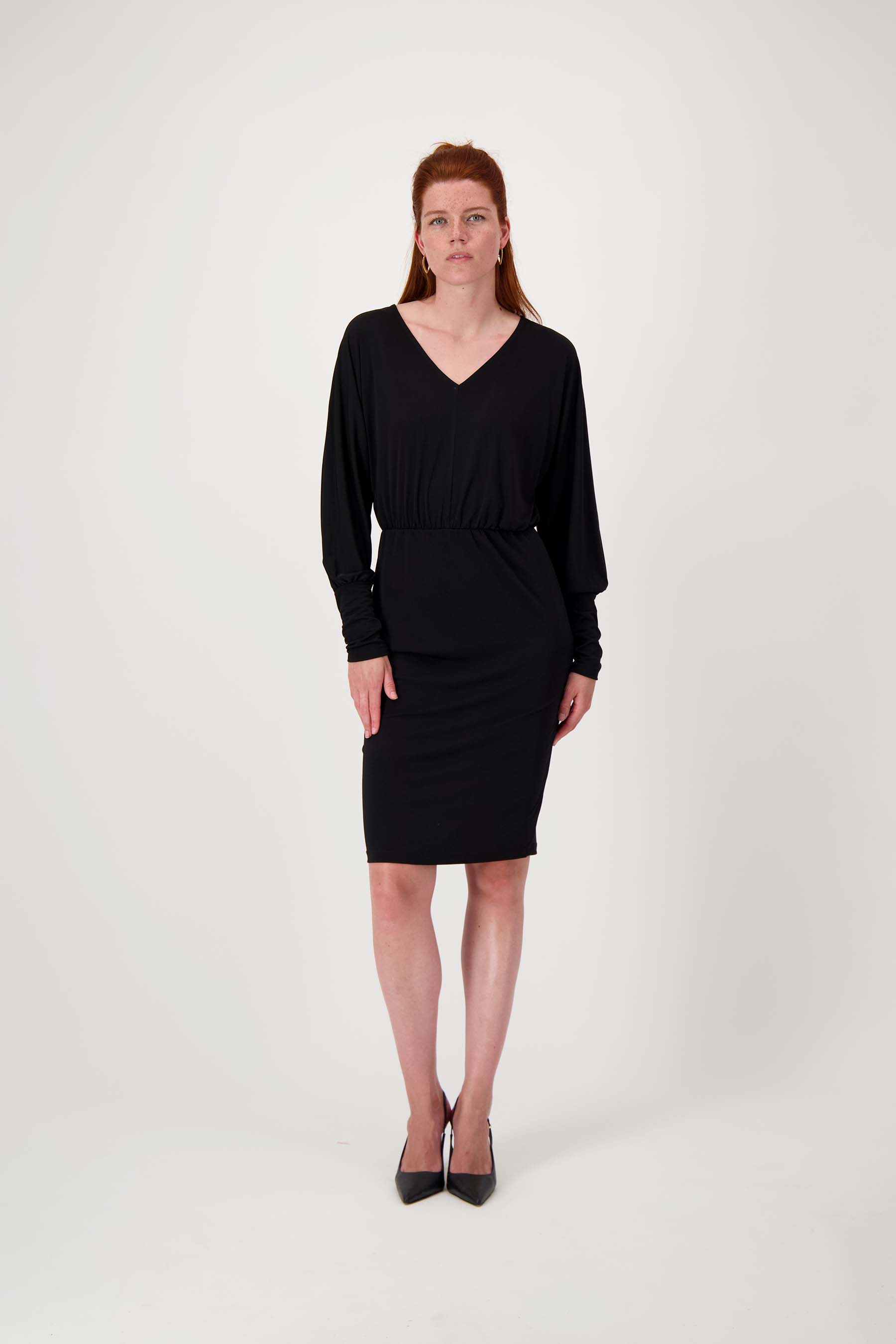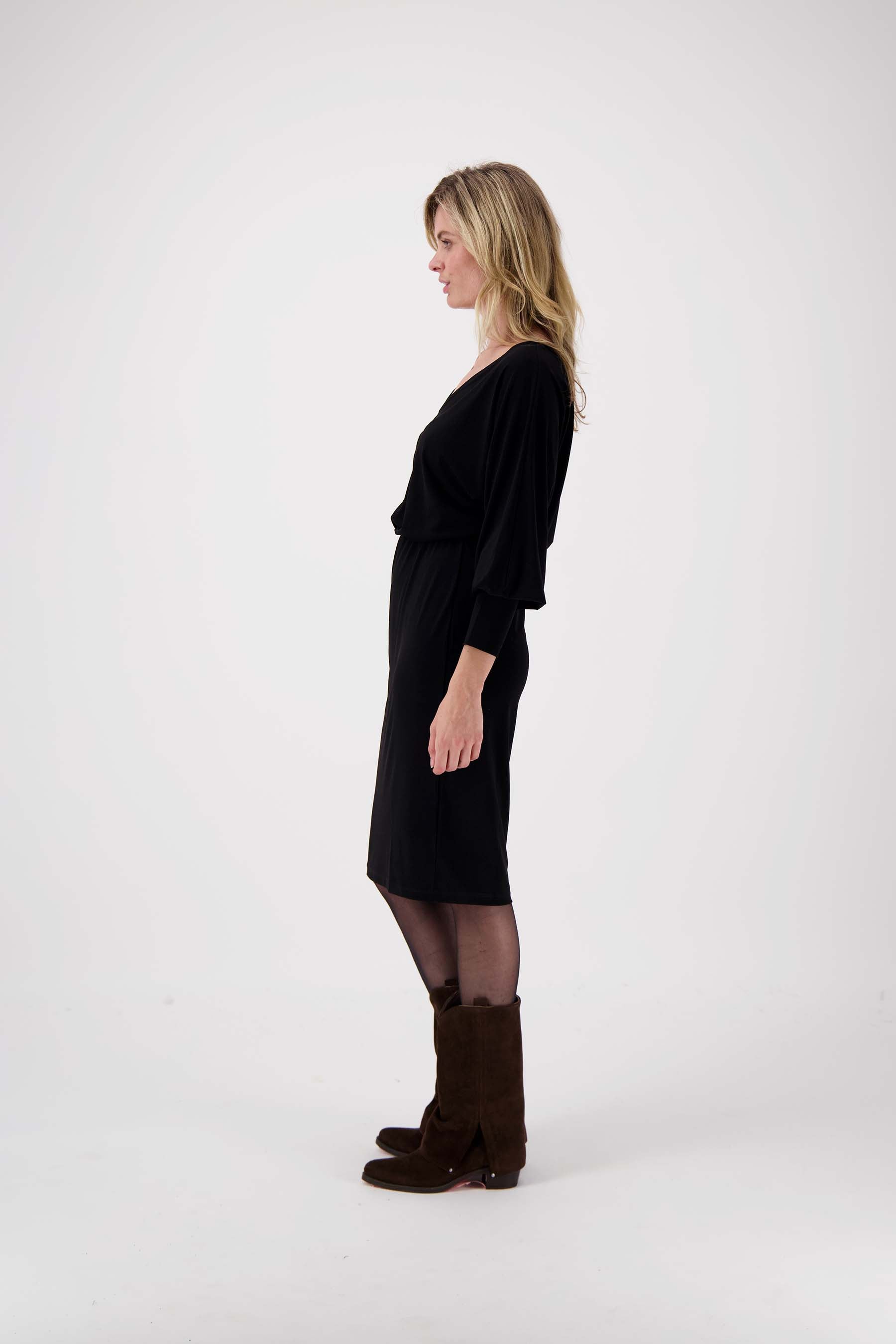 Zusss jersey jurk V-hals: tijdloos zwart comfort