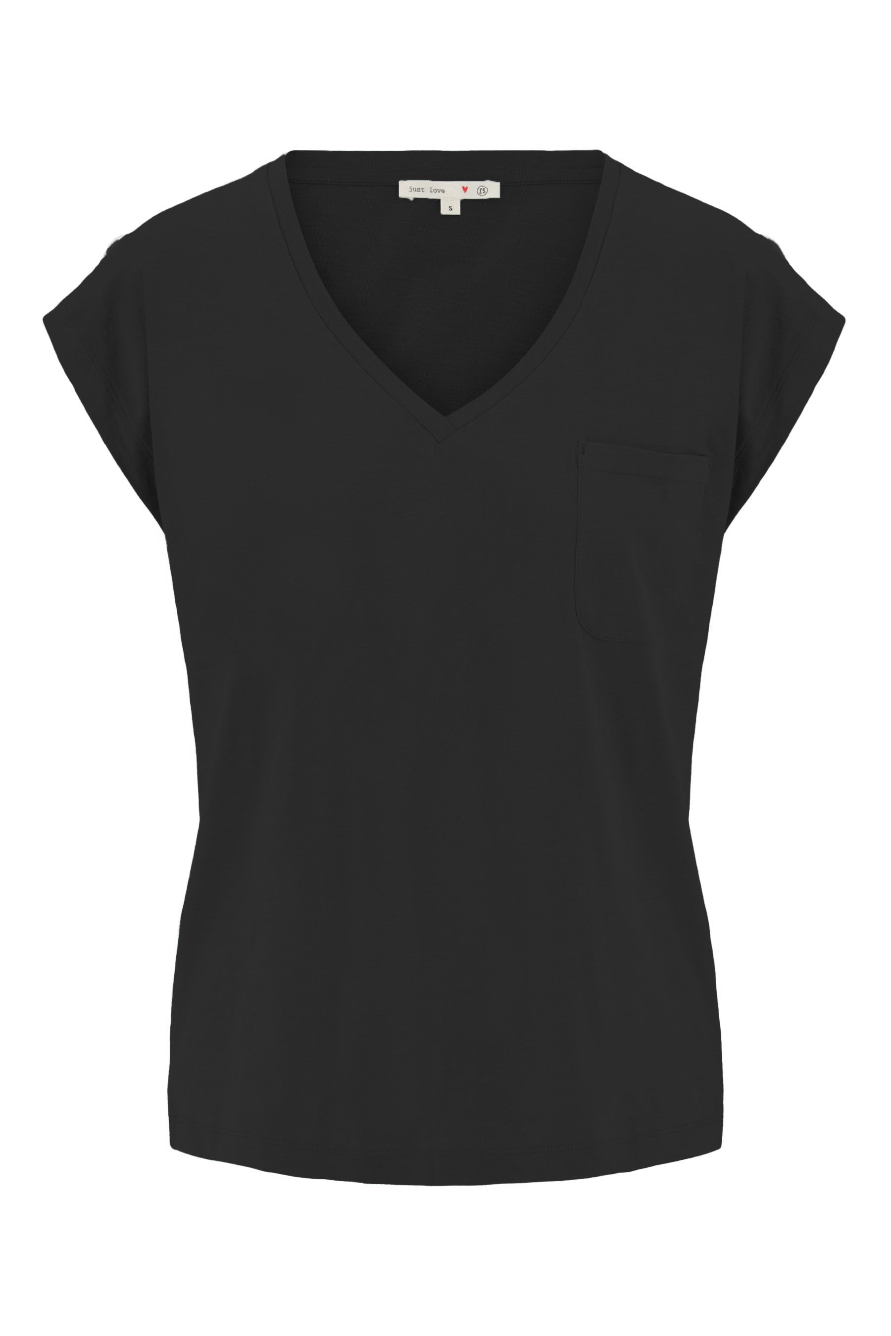 Dit fijne t-shirt van Zusss is lekker casual en overal mee te combineren. Van een wijde rok tot een Zusss jeans. Het perfecte item voor een casual voorjaarslook. De top is is gemaakt van een jersey stof. Deze top heeft korte mouwen, een v-hals en een zakje op de borst. Tip: kijk ook eens bij de Zusss sieraden om jouw outfit af te maken!