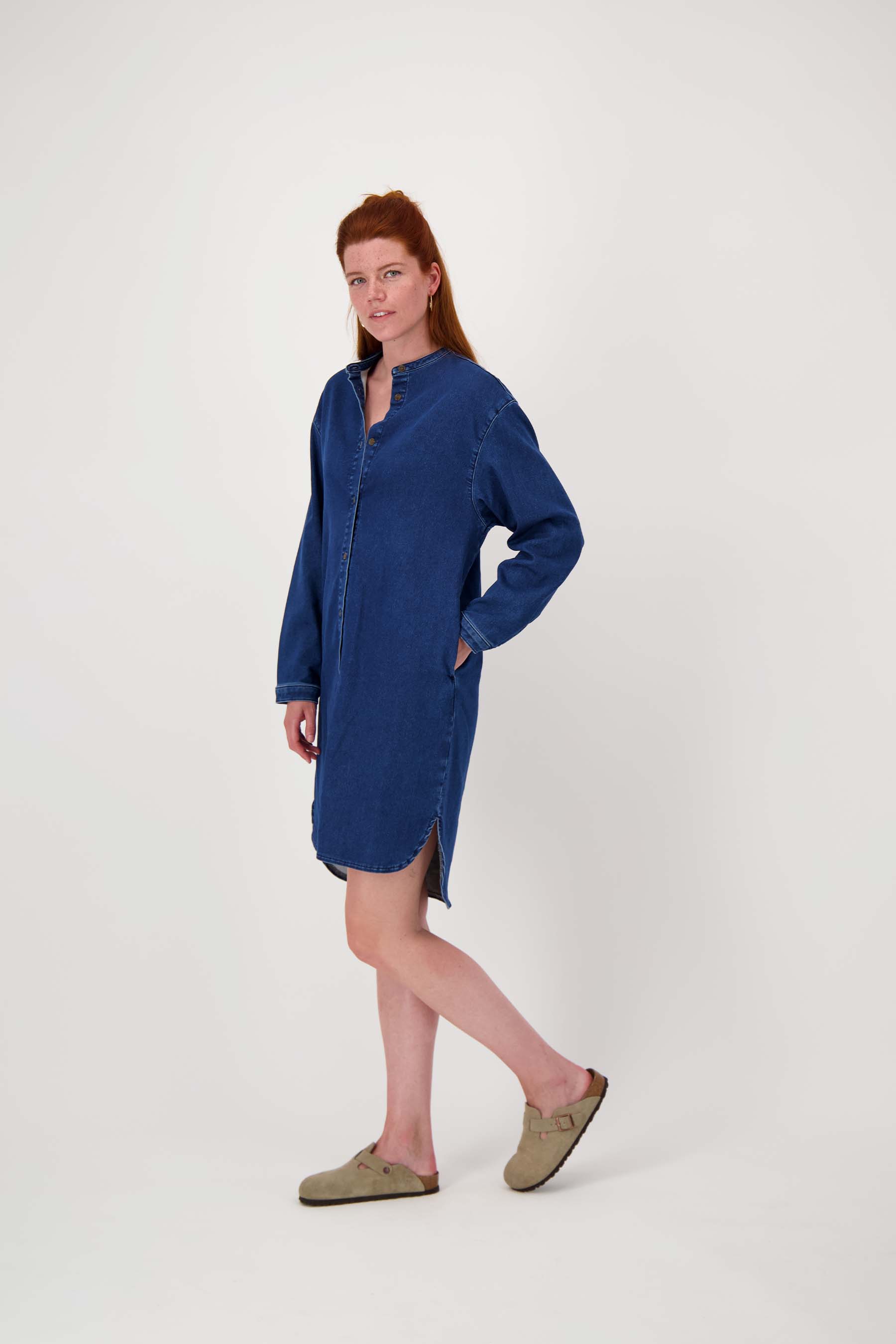 De Zusss jurk van jogger denim stof is perfect voor wie houdt van een stoere en comfortabele outfit. Deze jurk is gemaakt van mid blue denim en heeft een mooie, zachte uitstraling. Met de knoopsluiting en lange mouwen draag je deze jurk makkelijk elke dag. De jurk valt losjes en biedt veel bewegingsvrijheid, ideaal voor een relaxte stijl. Deze jurk is een fijne toevoeging aan je garderobe binnen de categorie kleding, en combineert moeiteloos basic met een tikkeltje eigenwijs.