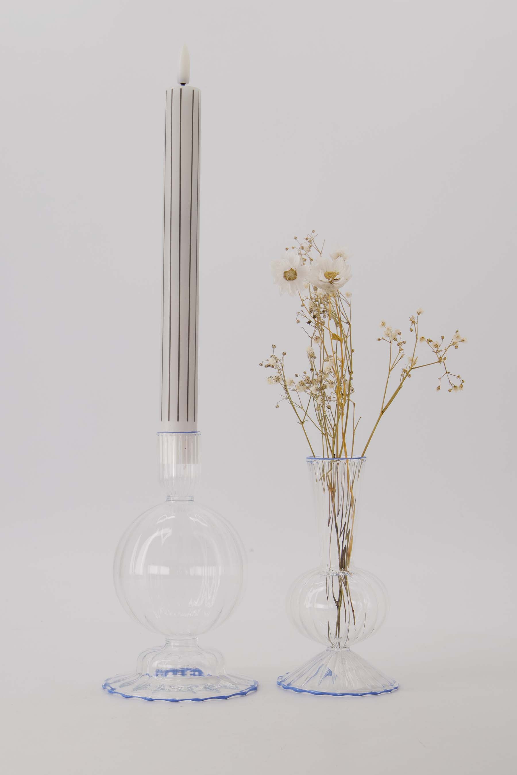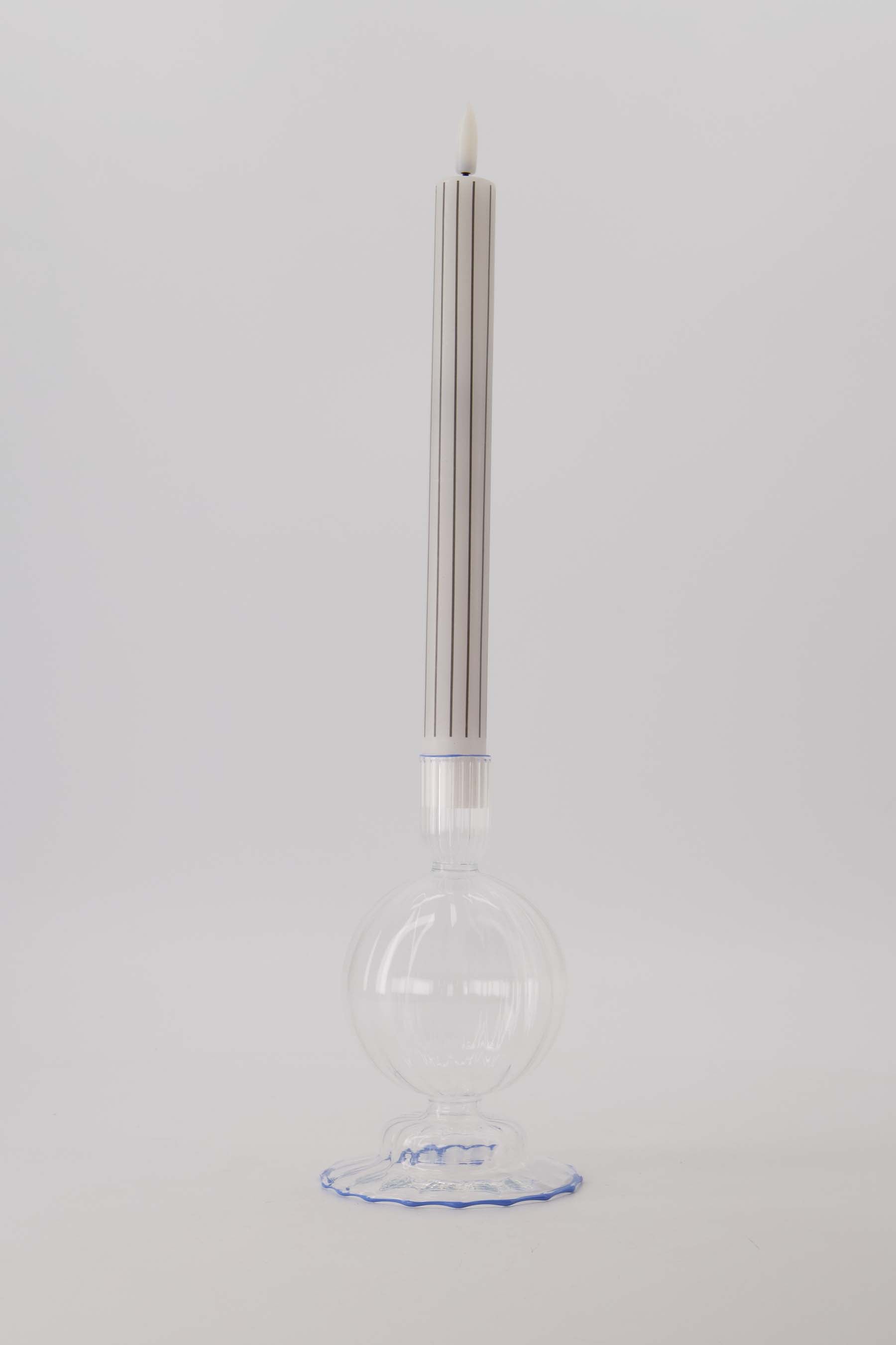Glazen ribbel kandelaar met een elegante bolling: deze kandelaar van Zusss brengt direct sfeer in huis. De glazen ribbel kandelaar is gemaakt van glas en uitgevoerd in een zachte, heldere tint met subtiele blauwe accenten langs de rand. De ronde vorm in combinatie met de ribbelstructuur zorgt voor een speels en stijlvol effect. Met zijn stabiele voet en verfijnde hals is deze glazen ribbel kandelaar perfect voor een dinerkaars. Prachtig te combineren met andere items uit de woondecoratie of kandelaars categorie voor een warm geheel.
