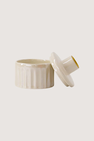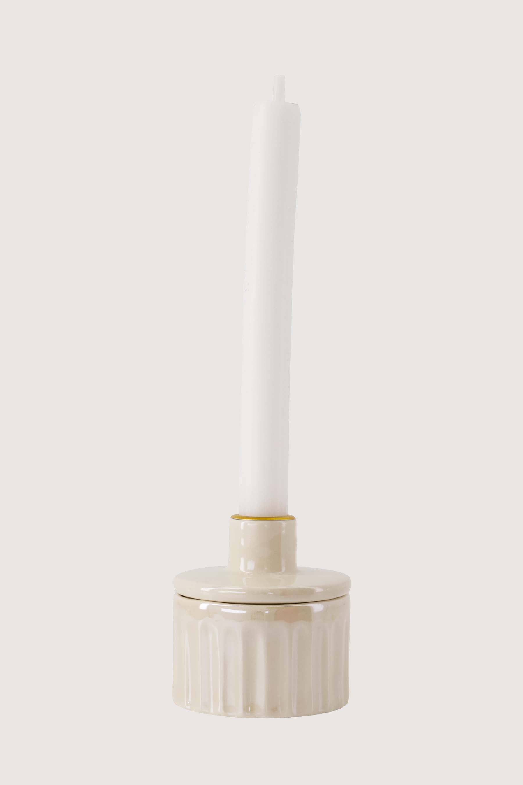 Zusss kandelaar keramiek parelmoer ribbel met deksel in zandkleur