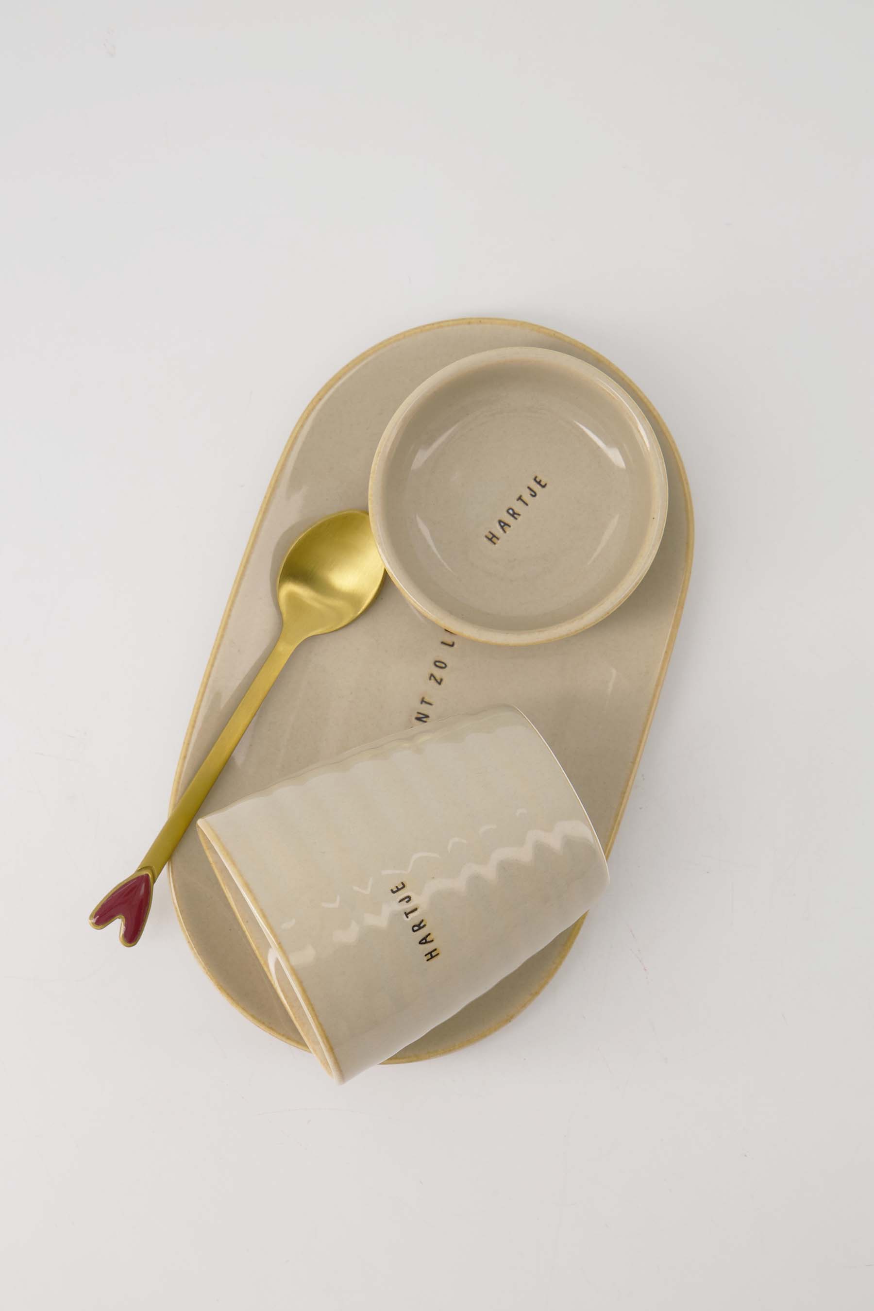 De Zusss koffiemok hartje geeft je iedere dag een warm moment. Deze koffiemok hartje valt op door zijn zachte zandkleur en de subtiele, handgemaakte uitstraling. Perfect voor je keuken, deze mok met het lieve woordje ‘hartje’ maakt koffiedrinken nét iets specialer. Dankzij het duurzame keramiek is deze koffiemok hartje stevig en stijlvol, een fijn item voor dagelijks gebruik. Combineer ‘m met andere Zusss keukenaccessoires voor een gezellig geheel.