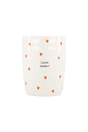 Deze koffiemok van Zusss is o-zo leuk! Op deze witte koffiemok staan rode hartjes en op de voorkant in zwarte letters: lieve mama. Perfect als kadootje! De koffiemok heeft een diameter van 7cm en is 9,5cm hoog. Hierdoor past er 200ml aan koffie in! Je combineert deze ook leuk met de andere aardewerken items van Zusss. Je bekijkt ze in de categorie servies.