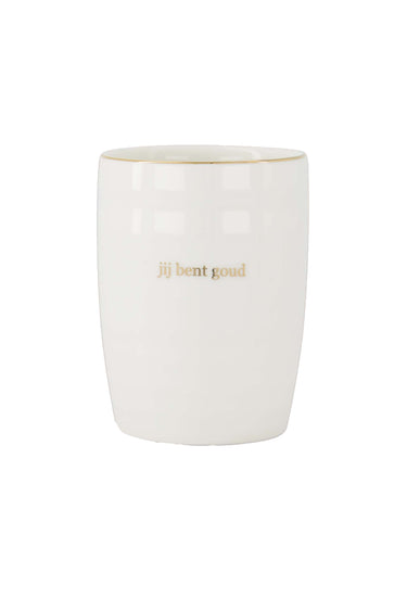 De Zusss koffiemok is een fijne keuze voor wie van een warm kopje koffie wil genieten met een bijzondere touch. Deze koffiemok valt op door de elegante gouden tekst “jij bent goud” en een dunne gouden rand aan de bovenkant. Het strakke, witte design past moeiteloos in elke keuken en brengt een beetje extra warmte bij elk moment. De Zusss koffiemok voelt prettig in de hand dankzij zijn gladde, afgeronde vorm. Perfect om jezelf of een ander te verrassen met een simpel, lief gebaar vol stijl.