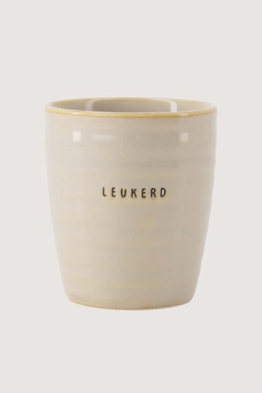 De Zusss koffiemok leukerd brengt een vrolijke touch aan jouw koffiemoment. Deze koffiemok leukerd heeft een zandkleurige, matte uitstraling en is gemaakt van hoogwaardig keramiek. Met een compacte maat van ongeveer 9 cm hoog is deze koffiemok leukerd perfect voor een kopje koffie of thee. Door de eenvoudige, authentieke vormgeving en tekst laat deze koffiemok leukerd zich combineren met diverse serviezen. Ontdek meer gezellige bekers in onze mokken collectie en maak van elk koffiemoment een feestje met Zusss.