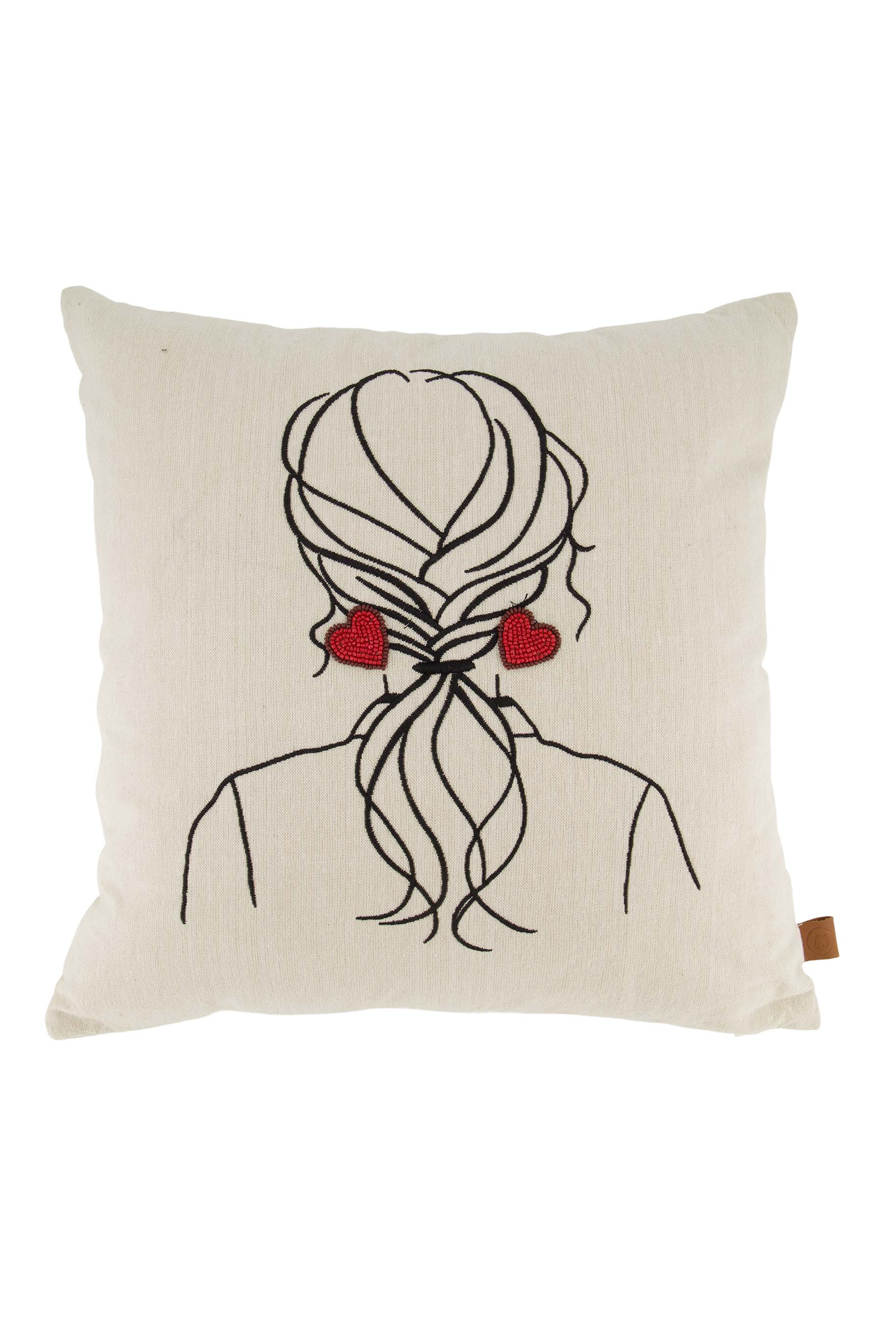 Dit Zusss kussen vrouw 45x45 cm brengt warmte en karakter in je woonkamer. Het kussen heeft een zachte, beige kleur en een subtiele tekening van een vrouw met opvallende rode hartjes als oorbellen. Met zijn afmeting van 45x45 cm past dit kussen perfect op iedere bank of stoel. Het kussen vrouw is een fijne basic die net dat beetje extra sfeer toevoegt aan je interieur. Combineer dit kussen met andere woonaccessoires voor een gezellig en persoonlijk huis.