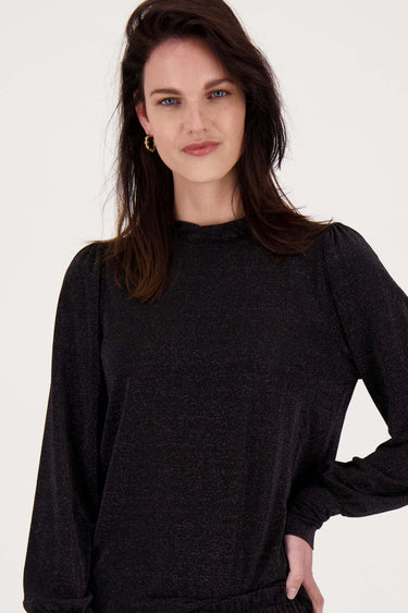 Met deze fijne Zusss top kun je alle kanten op! De top is zwart van kleur en door het lurex een schitterende uitstraling. Combineer 'm met een gave rok of een fijne Zusss broek . Deze top is een perfect item voor tijdens de feestdagen! De top heeft een hoge hals, lange ballon mouwen en sluit met twee knoopjes in de nek. Dit item is gemaakt van 40% polyester, 30% lurex, 22% viscose en 8% elastaan. Kijk ook eens bij de Zusss mooimakers ! Welk item is jouw favoriet?