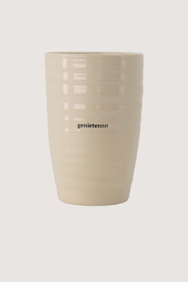 De Zusss mok zand is dé musthave voor jouw koffiemoment. Deze mooie zandkleurige mok met de tekst 'genietennn' straalt gezelligheid uit. Gemaakt van hoogwaardig keramiek, heeft deze mok een fijne structuur en een inhoud die perfect is voor een groot kopje koffie of thee. Met een comfortabele afmeting past hij moeiteloos in je keuken of op kantoor. Deze Zusss mok zand brengt elke dag een warm en stijlvol moment van genieten. Combineer de mok met een van onze borden en kommen, voor een leuke tafelsetting.