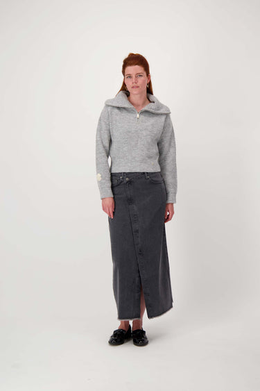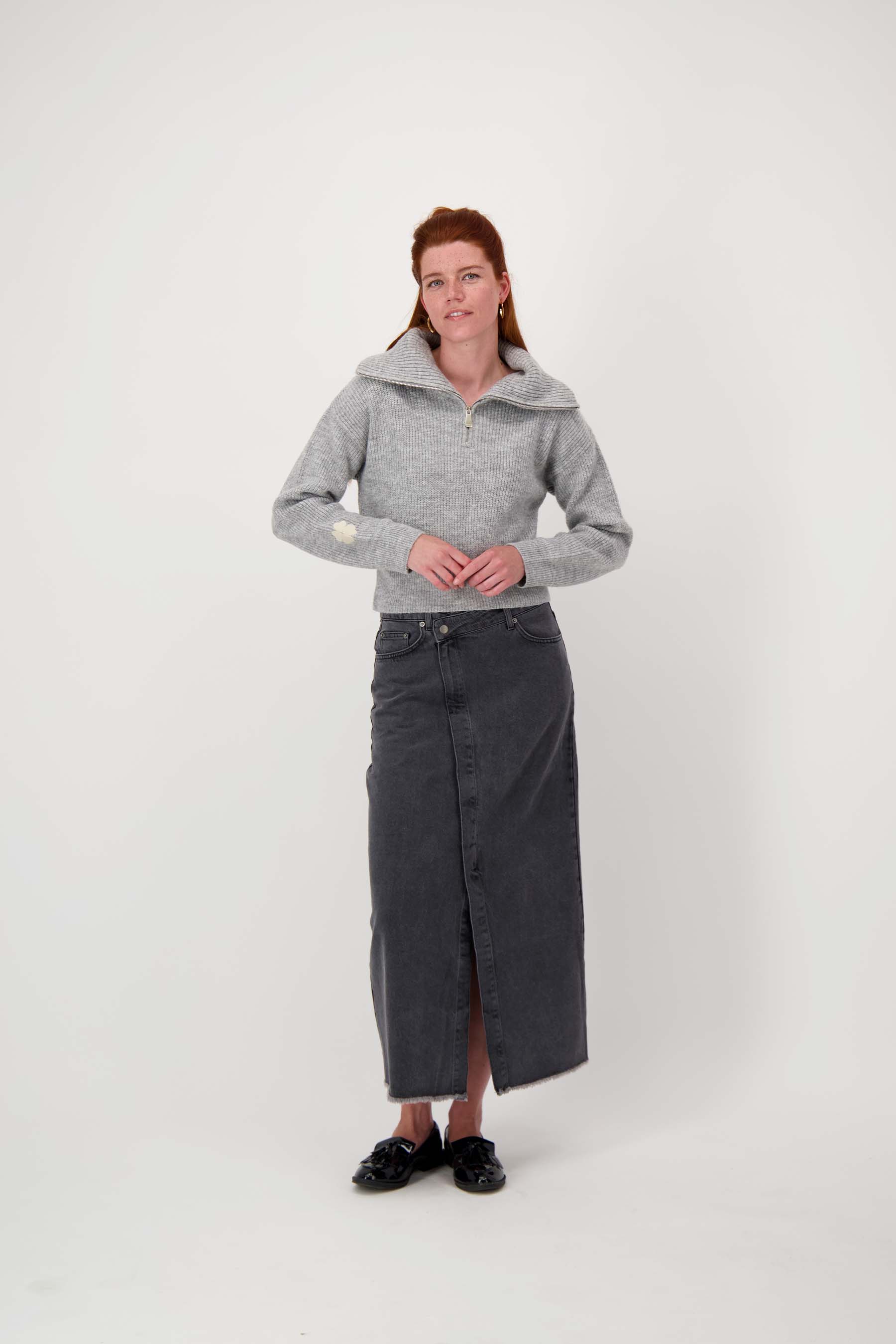 Zusss overslag rok denim: tijdloze grijze rok voor elke dag