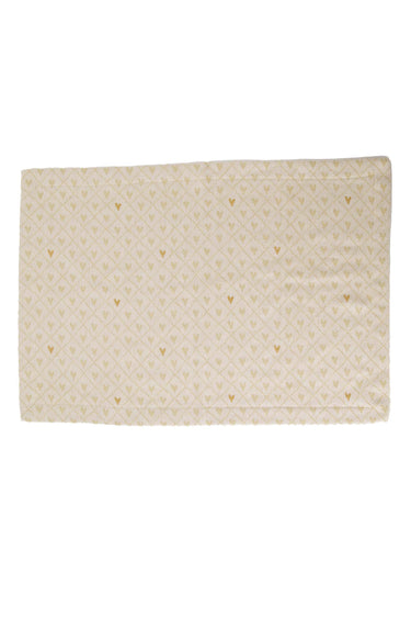 De Zusss placemat hartjes brengt een zachte sfeer in je keuken met het fijne beige dessin en een subtiel patroon van gouden hartjes. Deze placemat in zandkleur past perfect binnen de keukentextiel collectie en biedt niet alleen praktische bescherming voor je tafel, maar ook een stijlvolle touch. Het textiel is soepel en makkelijk te combineren met andere accessoires voor een gezellig en warm interieur. Voeg deze placemat hartjes toe voor die extra warme uitstraling aan jouw eettafel en geniet van een basic en stoer design.