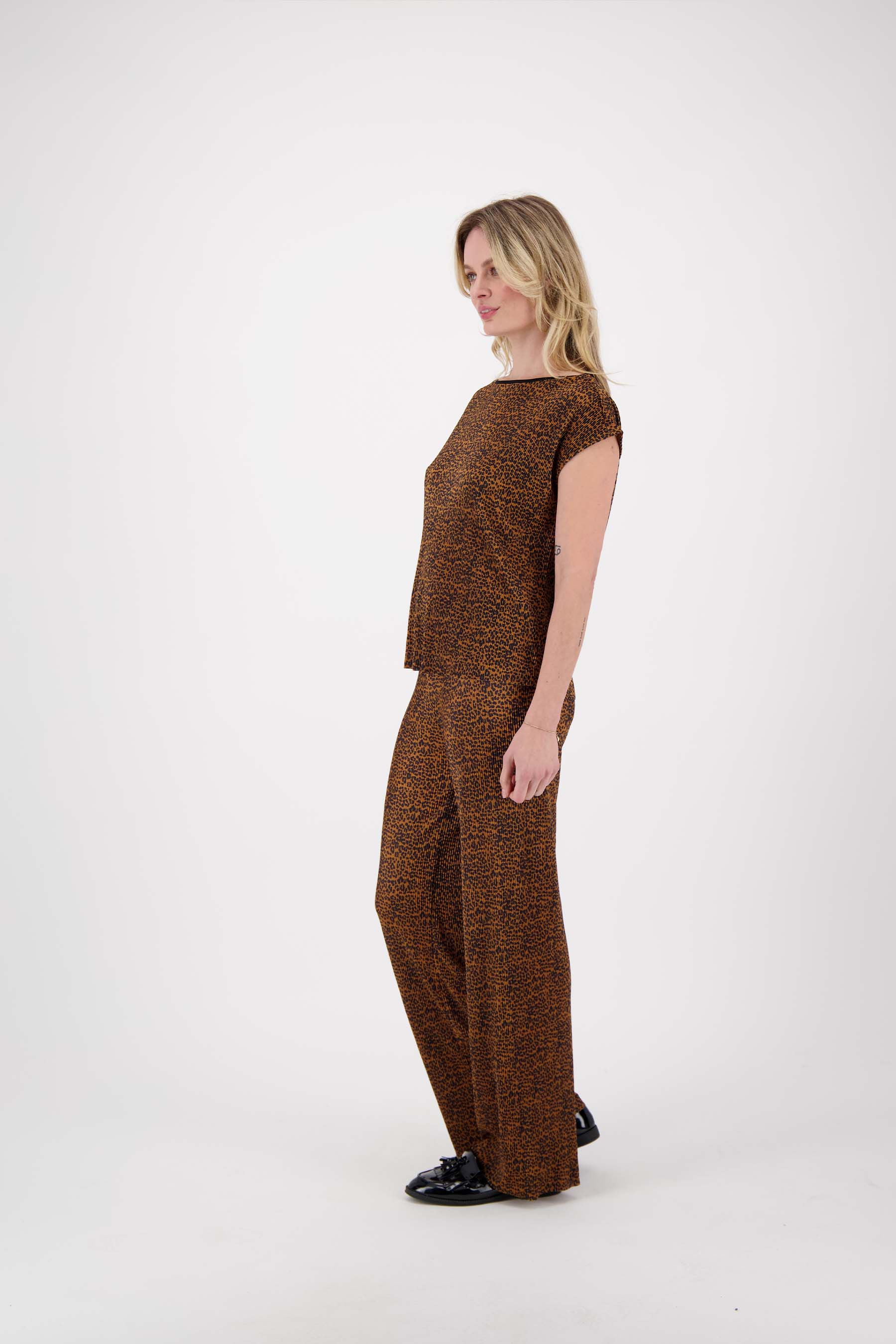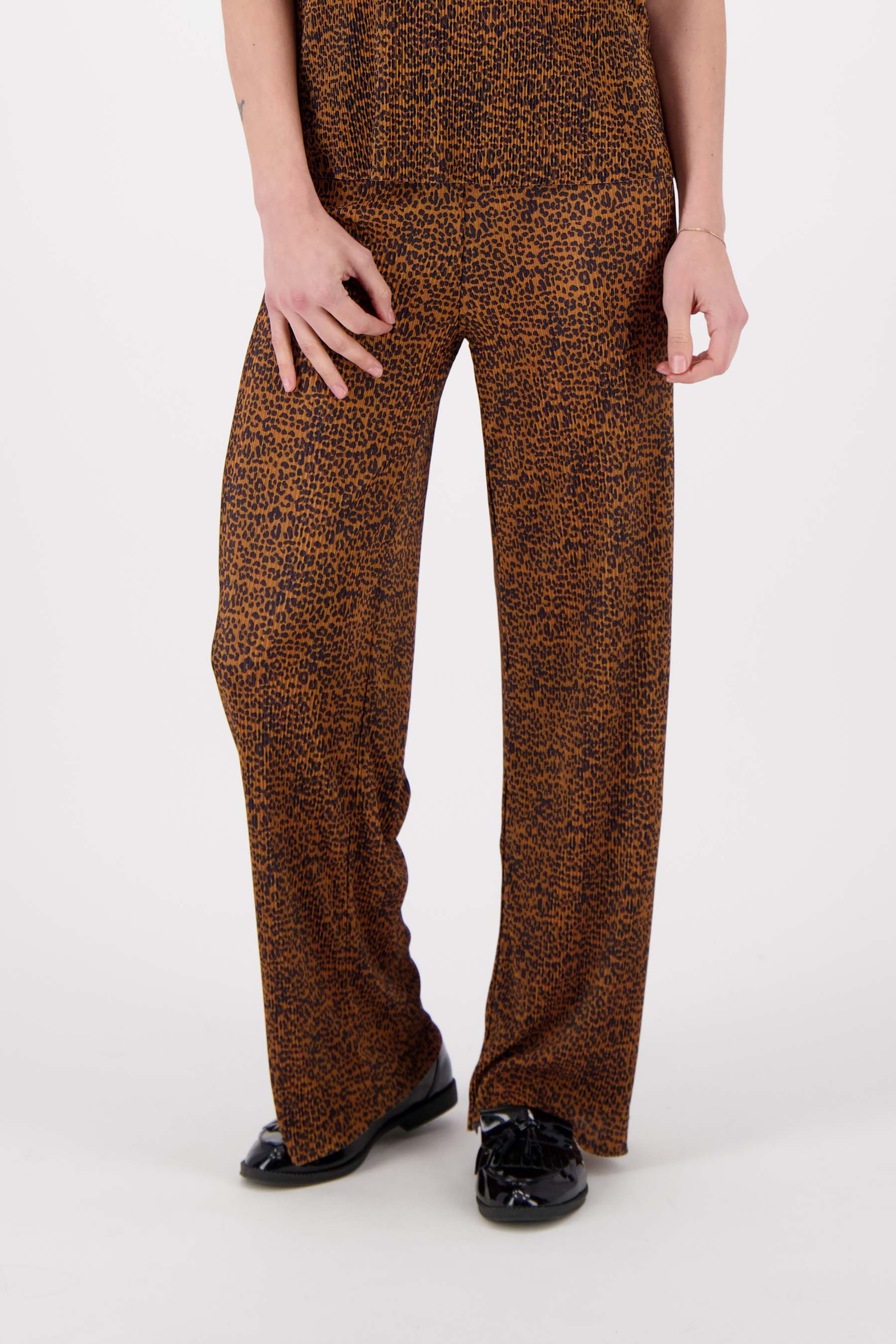 In deze broek van Zusss straal je! Deze lange broek is camel kleurig met daarop een gave panterprint. Combineer 'm met een plisse top of fijne Zusss trui . Perfect voor tijdens de feestdagen! Dit item is gemaakt van 100% polyester. Kijk ook eens bij de Zusss mooimakers ! Welk item is jouw favoriet?
