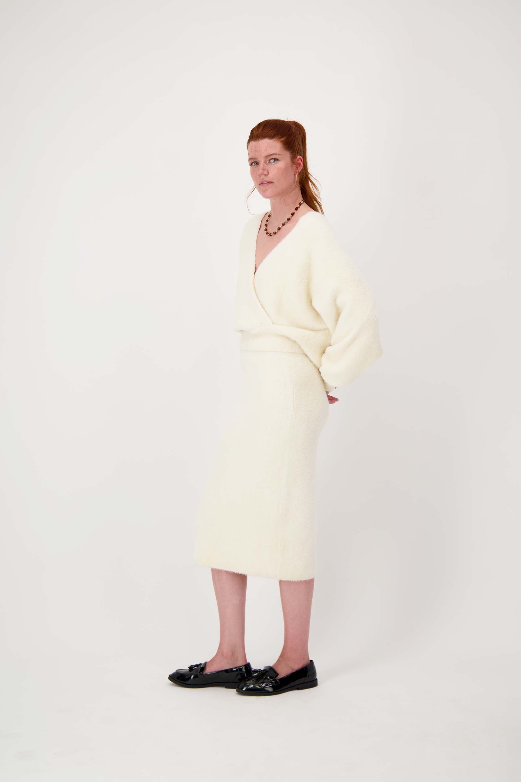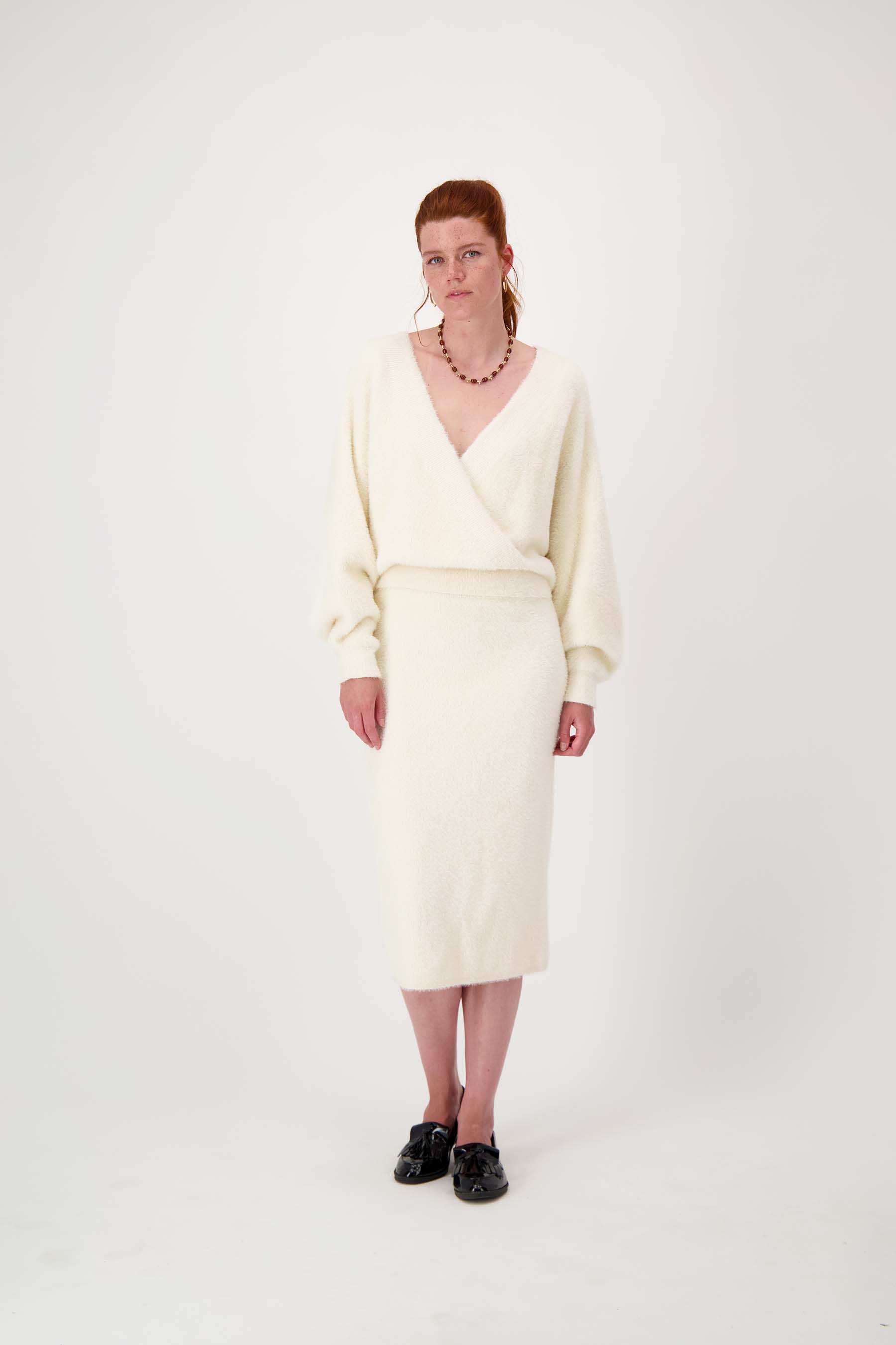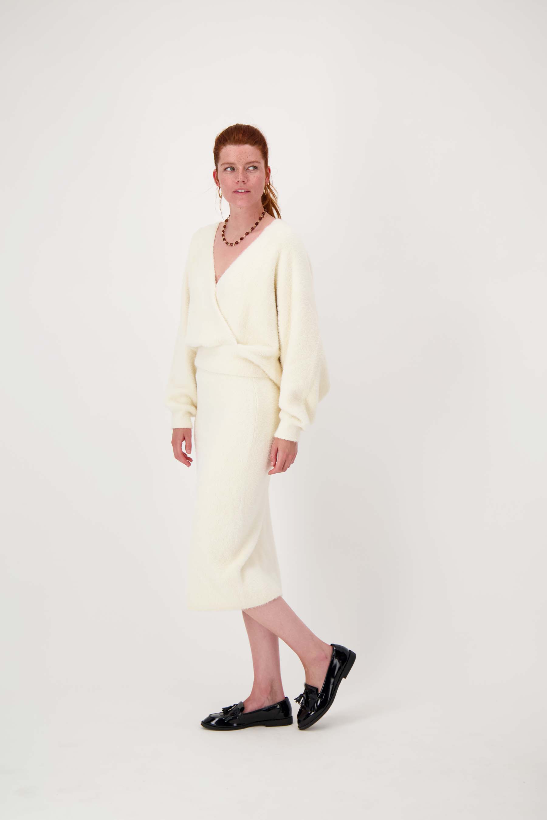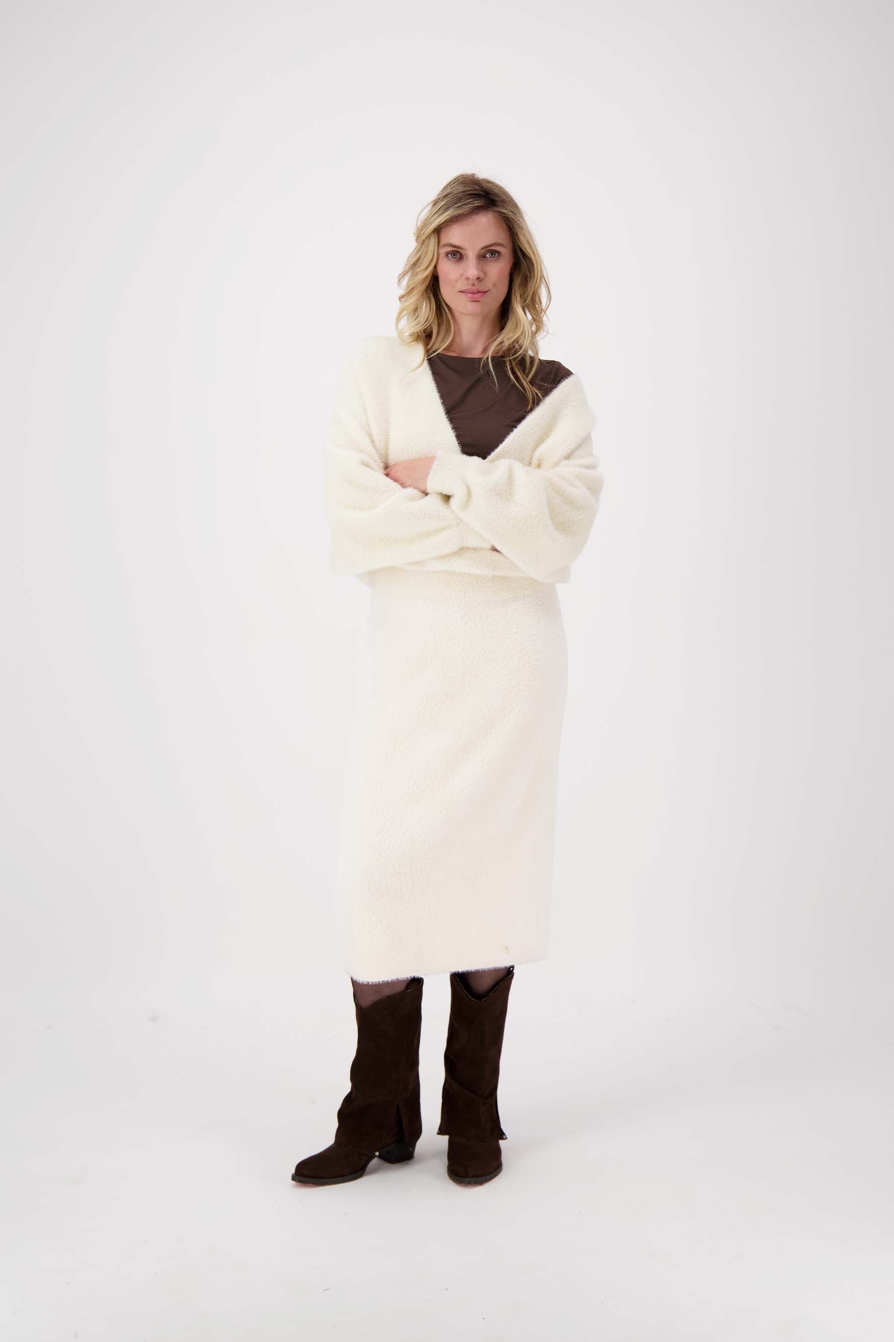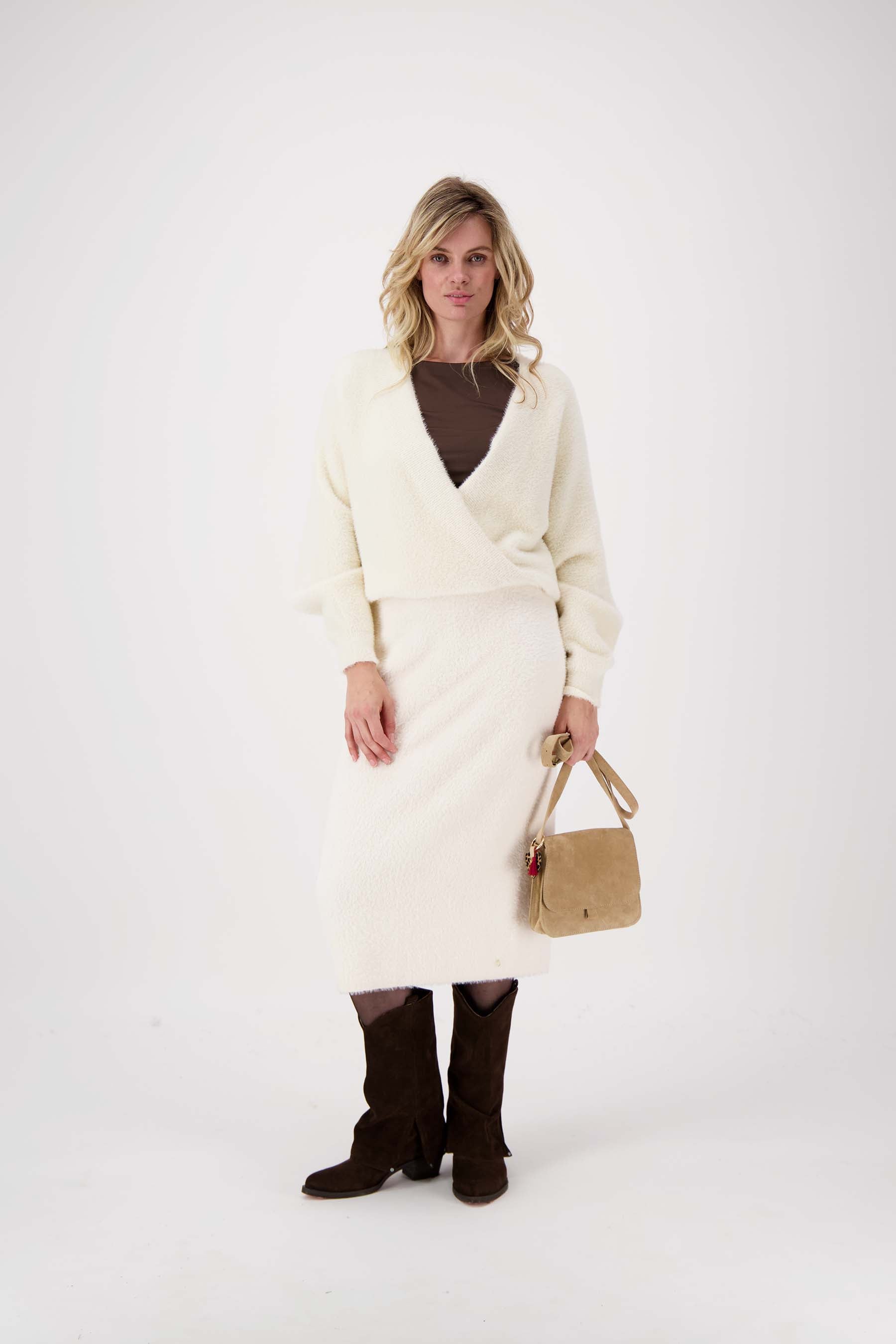 De Zusss rok in fluffy garen geeft je outfit een zachte en warme uitstraling. Deze rok in off white voelt heerlijk comfortabel aan en valt net over de knie, wat zorgt voor een elegante look. Perfect als basic in je kledingkast, maar met nét dat beetje extra door de zachte, pluizige textuur. Combineer deze rok eenvoudig met je favoriete trui of blouse uit onze collectie voor een stijlvolle, casual outfit. De rok is een fijne toevoeging aan de categorie rokken, die zich onderscheidt door het unieke fluffy garen en tijdloze kleur.