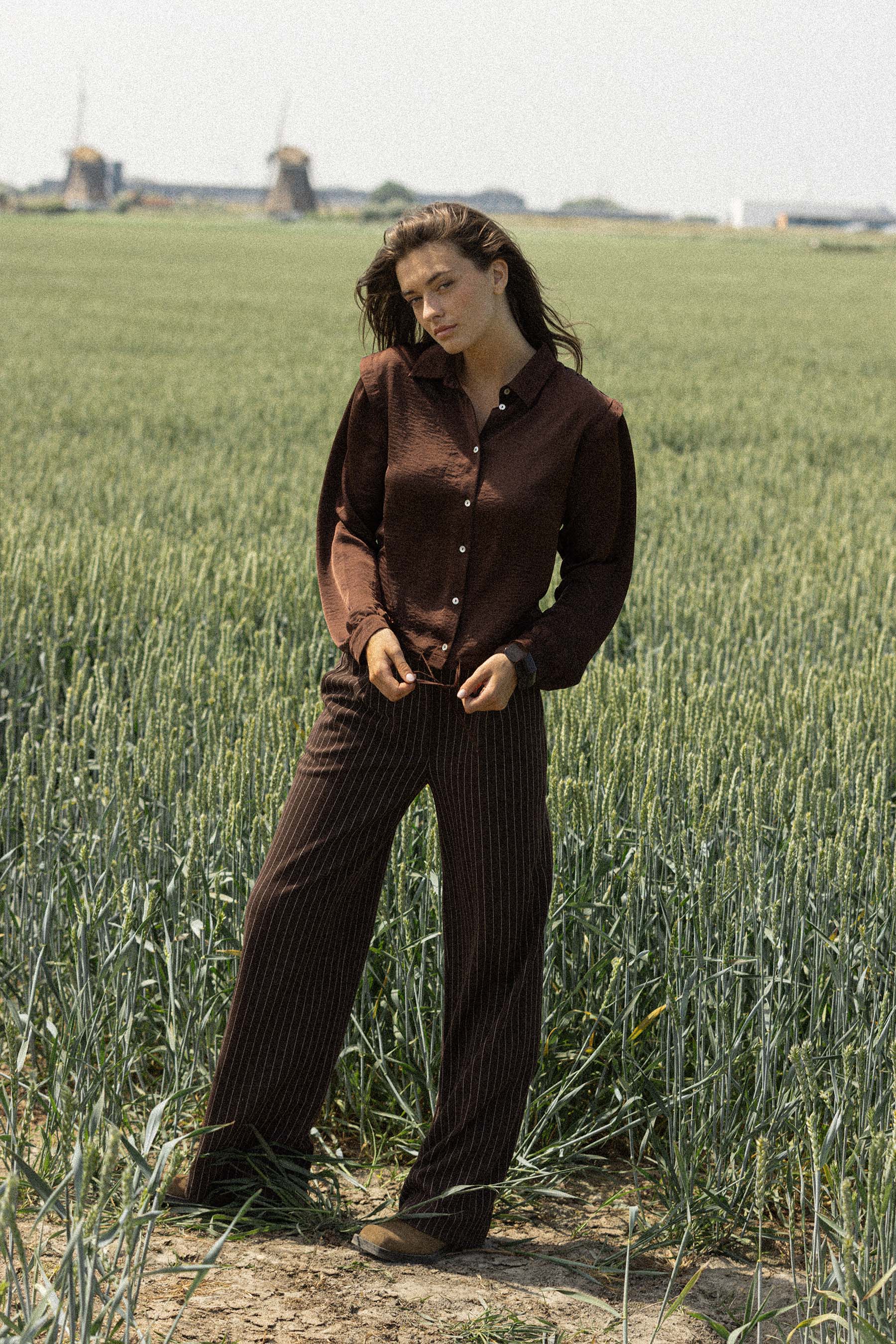 De Zusss satijnen blouse is een tijdloze toevoeging aan je kledingcollectie. Deze blouse met schouderdetail valt op door zijn zachte, chocoladebruine kleur en subtiele glans. Perfect voor wie houdt van een basic blouse met een stoer en uniek tintje. Het satijnen materiaal zorgt voor een fijne drapering en een luxueuze uitstraling, ideaal binnen de categorie blouses. Combineer dit kledingstuk gemakkelijk met je favoriete broeken of rokken voor een stijlvolle look.