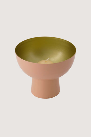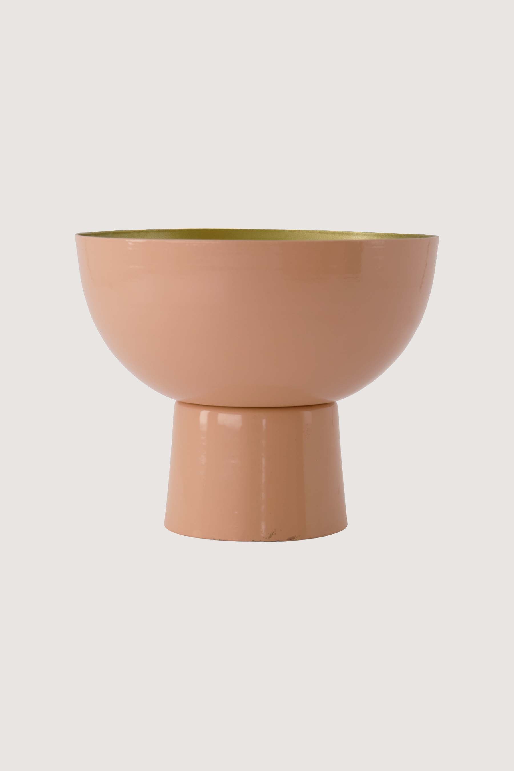 Zusss stijlvolle metalen schaal op voet in roze en goud