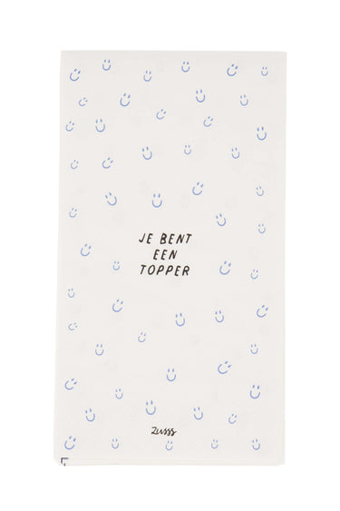 Met deze Zusss servetten breng je direct sfeer aan tafel. De servetten met het speelse ‘Je bent een topper’ design en vrolijke blauwe gezichtjes maken... Lees meer