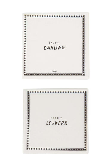 Deze Zusss servetten vierkant zijn perfect voor je keuken en maken elke tafel extra gezellig. De servetten vierkant combineren een zachte zandkleur met een stijlvolle antracietgrijze rand en de opdruk “Geniet leukerd” in het midden. Deze servetten vierkant zorgen voor een warme sfeer tijdens elke maaltijd en passen mooi in de keuken textiel collectie. Voeg een subtiel en uniek detail toe aan je servies met deze servetten vierkant van Zusss, die zowel praktisch als charmant zijn.