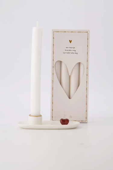 De Zusss kandelaar keramiek brengt een warme sfeer in huis. Deze mooie kandelaar is gemaakt van keramiek en heeft een zacht witte kleur, perfect voor elk interieur. De set bestaat uit een stijlvolle kandelaar met een subtiele hartvormige accent en een bijpassende verpakking, inclusief een mooie set kaarsen.