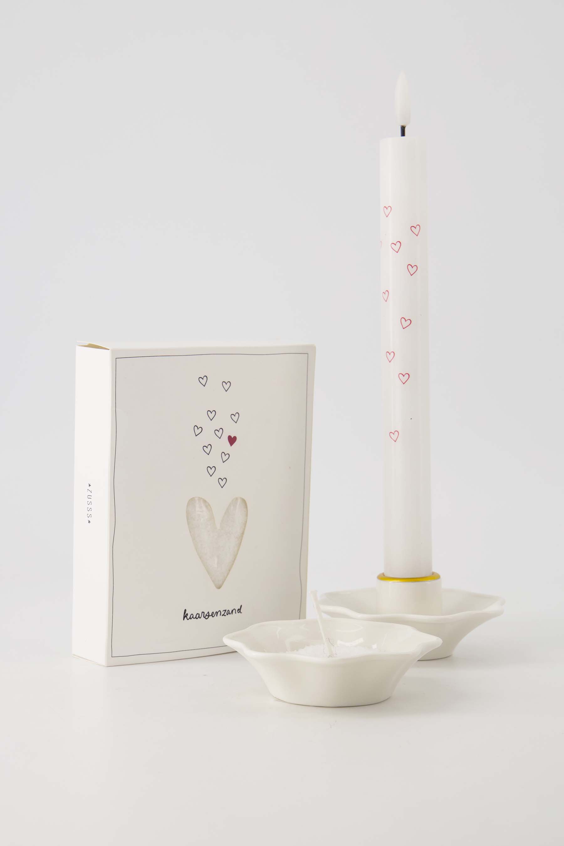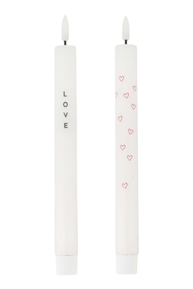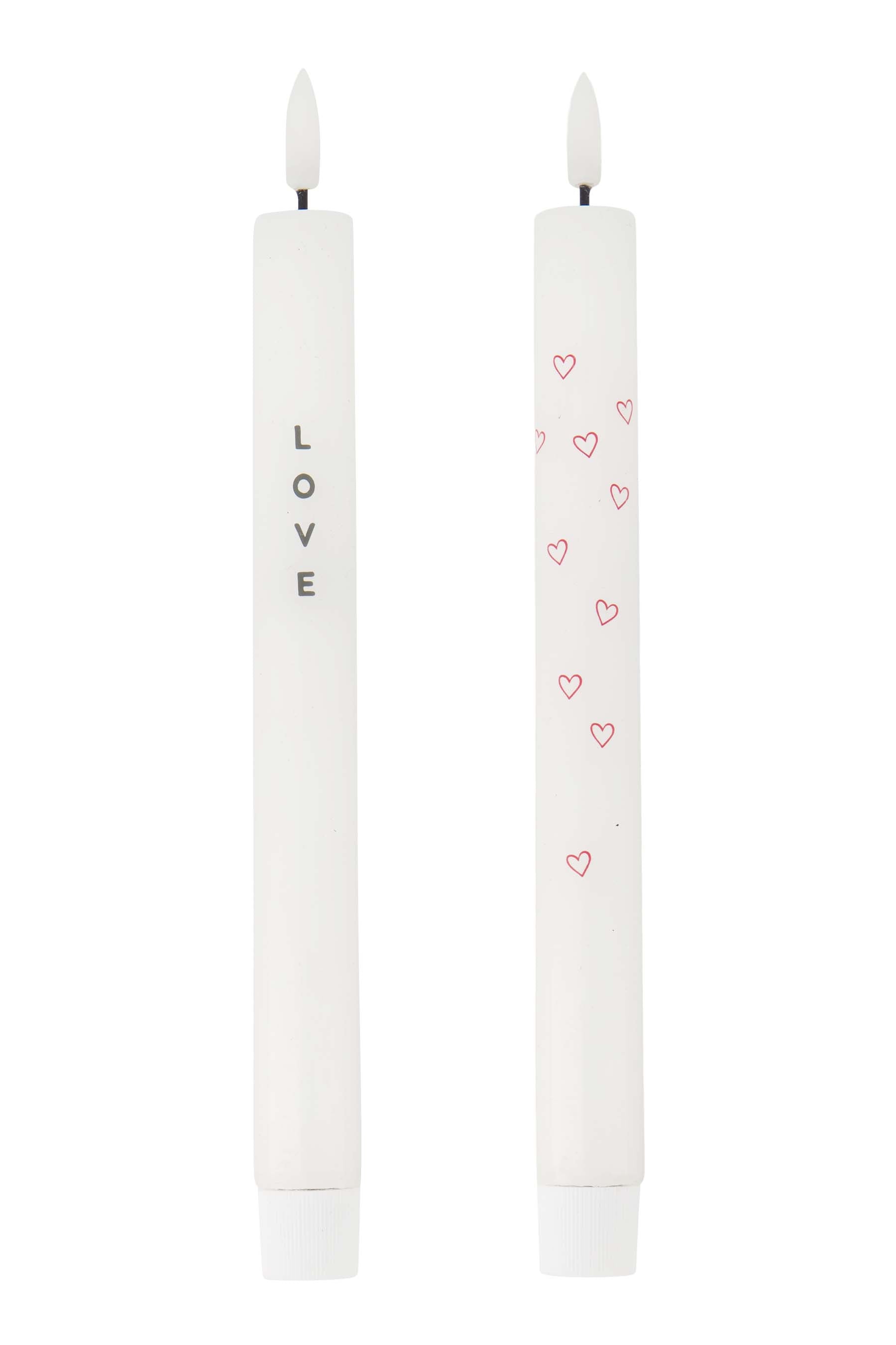 Deze Zusss ledkaarsen set brengt warmte en charme in je woonkamer. De ledkaarsen zijn wit met subtiele rood en groengekleurde hartjes, perfect voor een gezellig tintje zonder gedoe. De set van 2 ledkaarsen 'love' is ideaal voor wie sfeer wil creëren zonder vlam en rook. Met deze Zusss ledkaarsen haal je een basic, stoer en uniek accent in huis dat altijd brandt zonder zorgen.