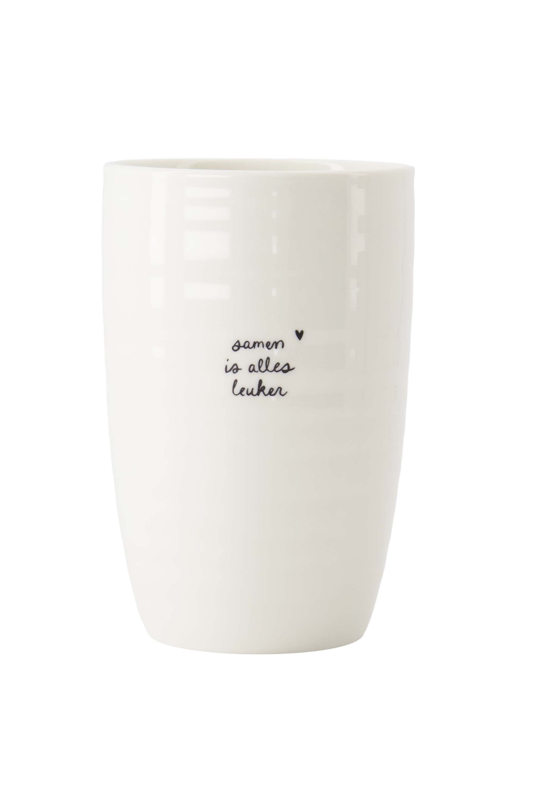 De Zusss mok set is perfect voor iedereen die mooie mokken waardeert. Deze set van 2 mokken, uitgevoerd in wit en voorzien van lieve teksten "samen is alles leuker" en "leukerd", is gemaakt van hoogwaardig keramiek voor een fijne drinkervaring. Met een inhoud die ideaal is voor grote koppen koffie of thee, passen deze mokken perfect in je keuken. Het formaat en de robuuste uitstraling maken ze onmisbaar bij onze keukenservies collectie.