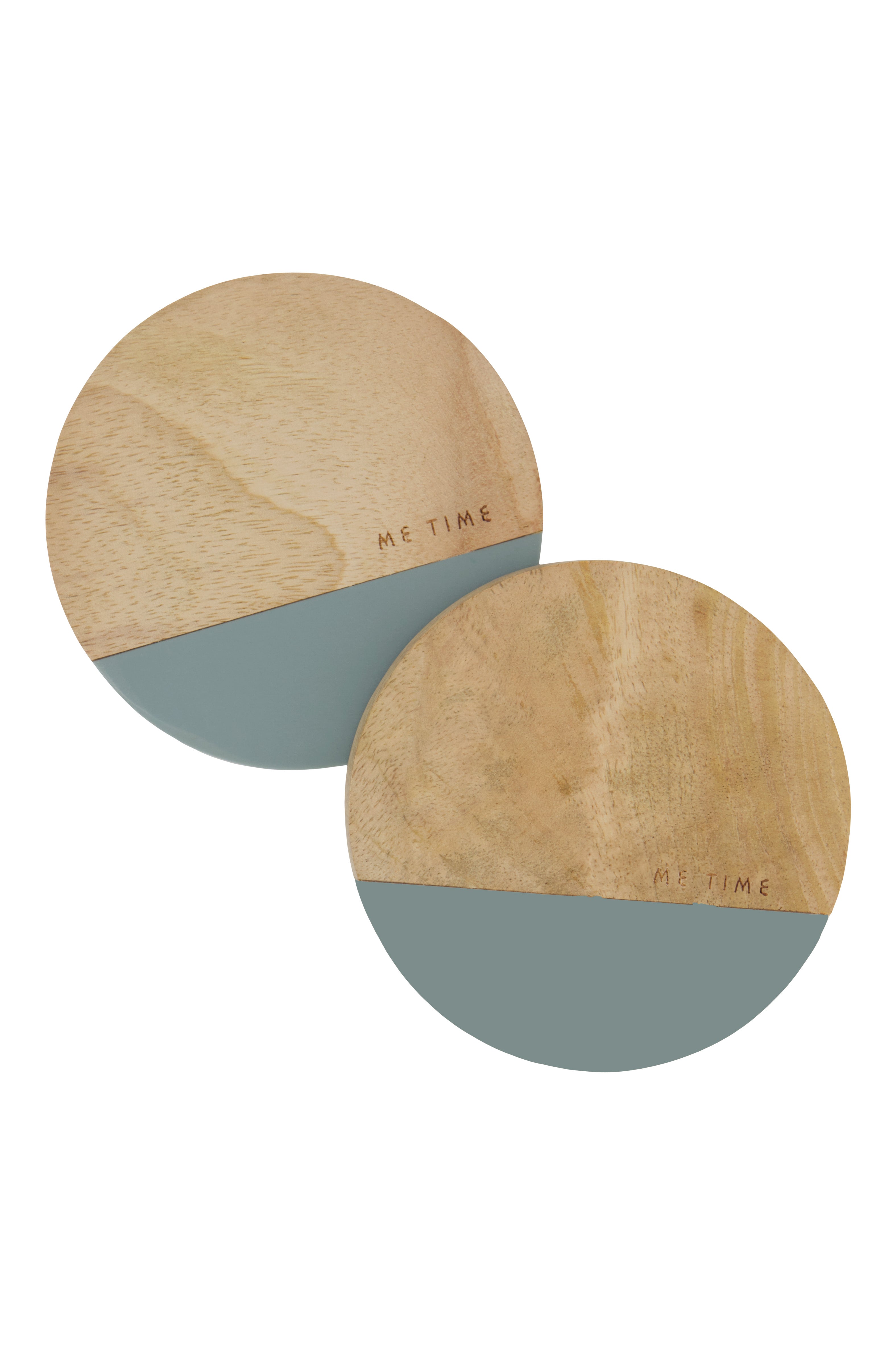 set van 2 onderzetters hout me time grijsblauw/naturel