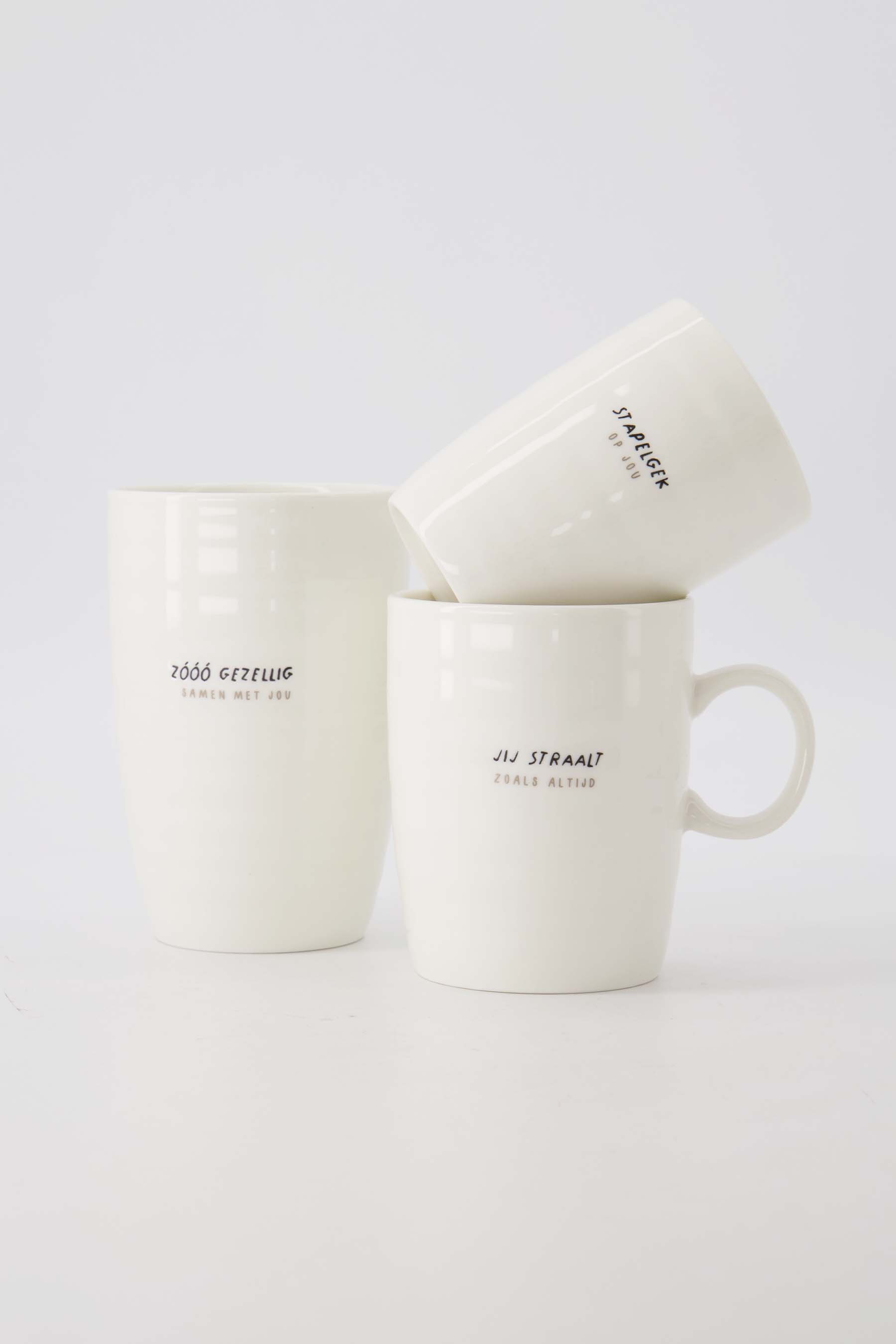 Deze Zusss mokken set is perfect voor wie houdt van fijne, basic designs. Het is een set van 3 mokken in wit keramiek met zwart tekst. De set geeft je koffiemoment nét dat beetje extra. Gemaakt van stevig keramiek, zijn ze ideaal voor dagelijks gebruik. Met een inhoud die ligt binnen de standaardmaten passen ze prima in de hand. Deze Zusss mokken set combineert praktisch gemak met een warme uitstraling en past perfect bij onze andere keukencollectie.