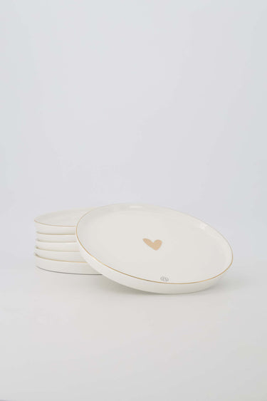 Zusss set van 6 ontbijtborden met goud hartje en randje