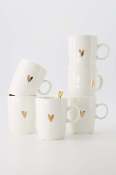Theemok van Zusss met een gouden hartje erop. Kenmerkend van goud geglazuurd servies is dat dit niet in de vaatwasser kan, vandaar dat je deze mok ook met de hand af moet wassen. Het product is ook niet magnetronbestendig. De mok is gemaakt van aardewerk en is 8cm breed en 10cm hoog. Daardoor past er lekker veel thee in, namelijk 300ml! De theemok heeft een oor. Op de voorkant van het mokje vind je ook een subtiel Zusss logo. Leuk om deze theemok te combineren met ander aardewerk items met gouden hartjes. Je bekijkt ze in de categorie servies. let wel: de set is exclusief lepeltjes, enkel de theemokken.