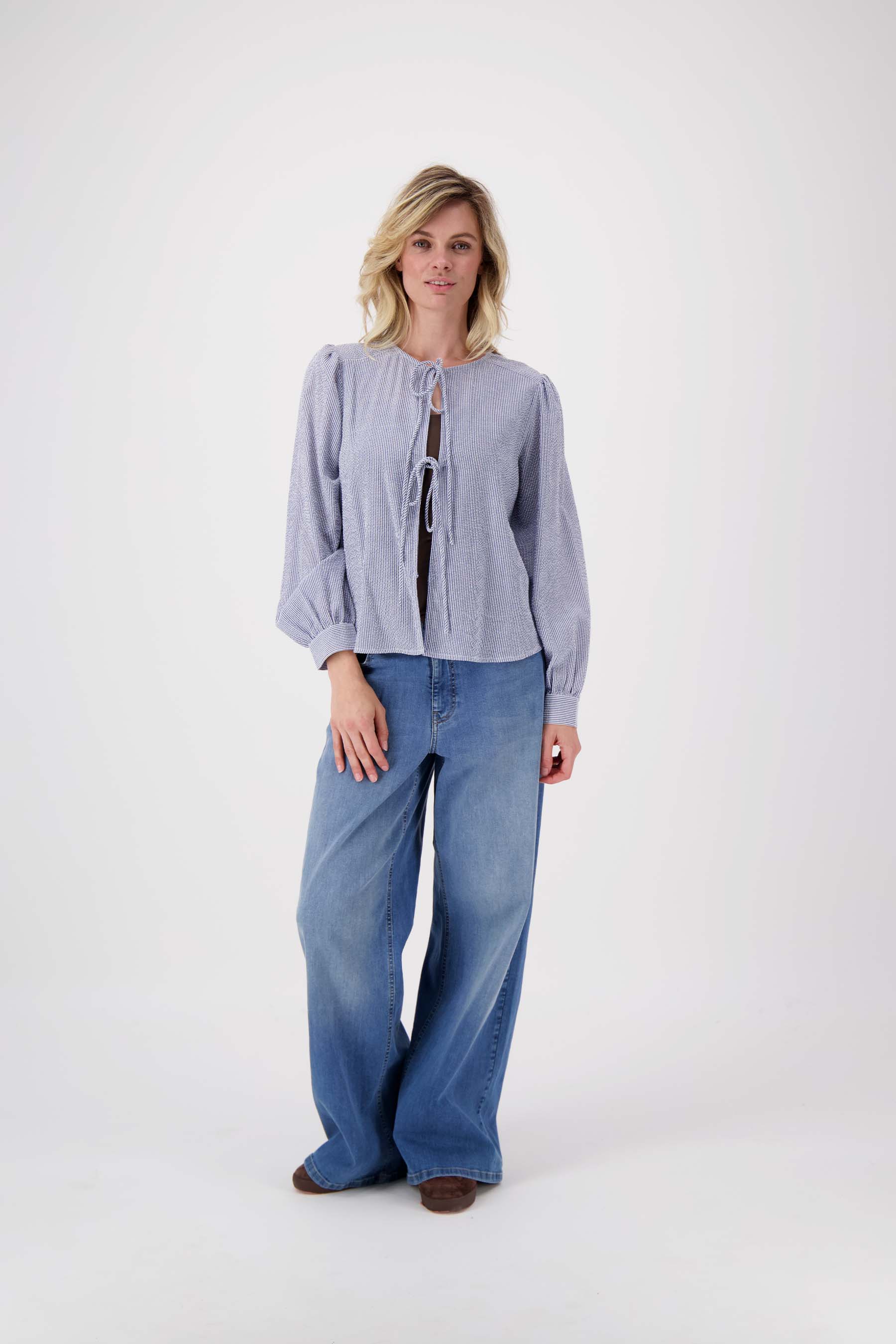 Met deze blouse van Zusss geef je jouw voorjaarsgarderobe een speelse en vrouwelijke touch. Het luchtige katoen en de ecru/off white strepen zorgen voor een frisse, natuurlijke uitstraling. Perfect om dichtgeknoopt te dragen als blouse óf open als licht jasje. Combineer met een fijne Zusss jeans of luchtige rok voor een stijlvolle look. De top is gemaakt van 100% katoen. Voeg mooie Zusss sieraden toe om de look af te maken!